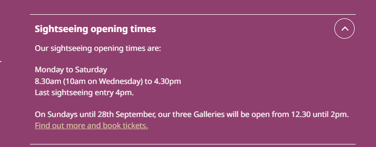 Mon–Sat: 8:30–16:30 (last entry 16:00); Wednesday opens at 10:00
