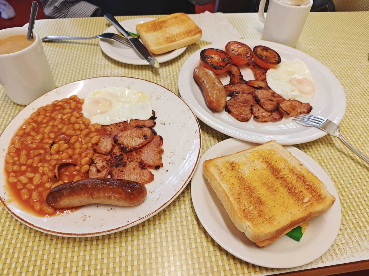 Recommended breakfast check‑in spot—said to have opened in 1946. The façade was under repair when we went; interior is vintage. But the food was a bit of a miss—bacon extremely salty! Even with beans it was too much—I don’t know if it’s always like this or just that day. Others were okay; ~£10 per person—budget friendly.