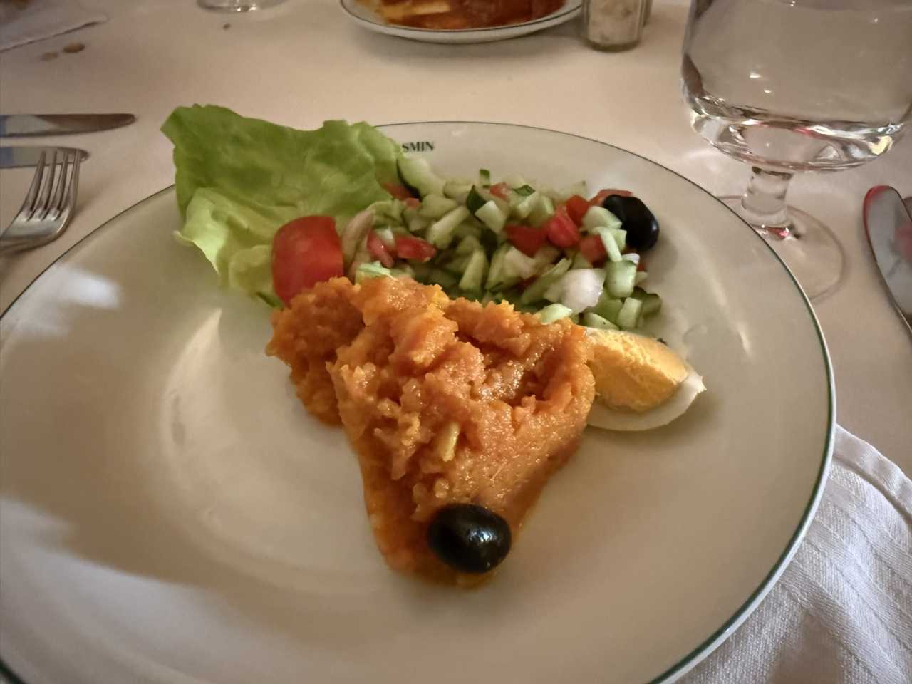 We were the last two to arrive, already dinner time; others had gathered to wander the medina and eat. Too tired to chase; after unpacking, we started our first Tunisian meal right in the hotel~