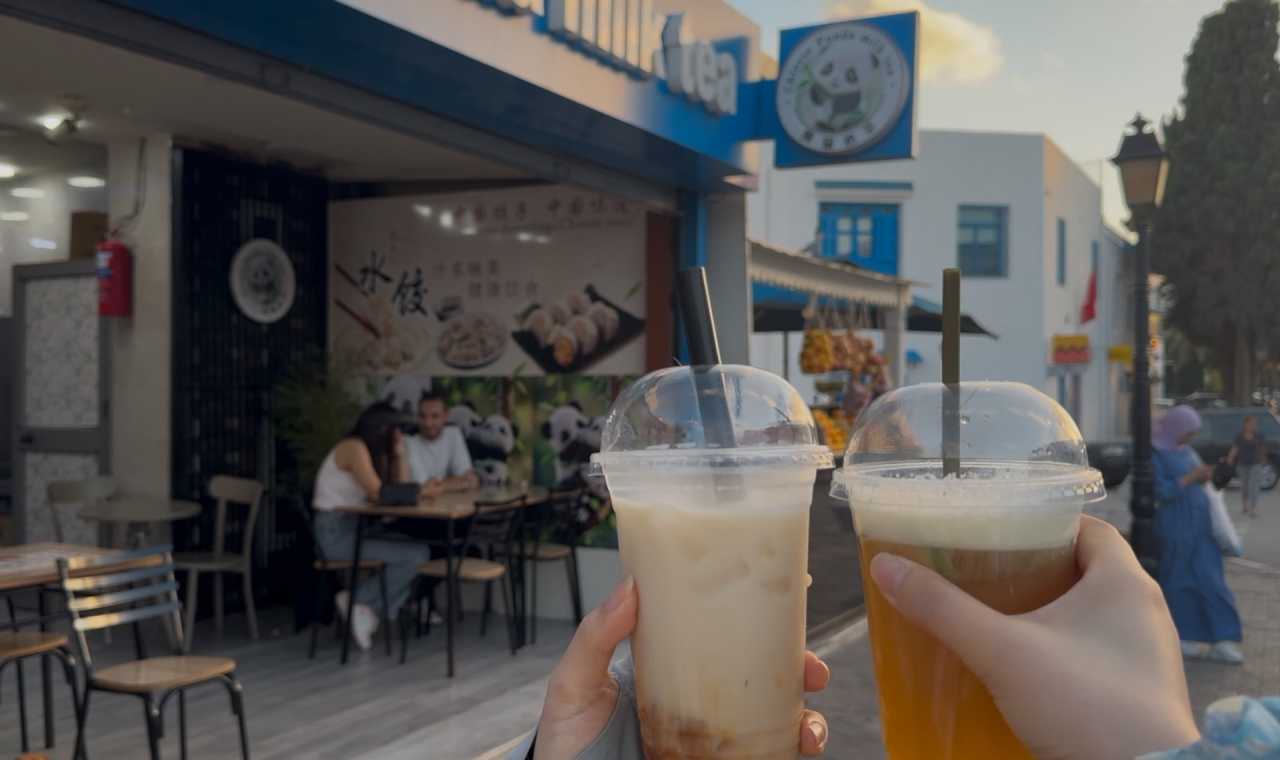It’s said there are about 30 Chinese residents in Tunisia, one runs a bubble tea shop here; we couldn’t resist and bought two cups of happy water~