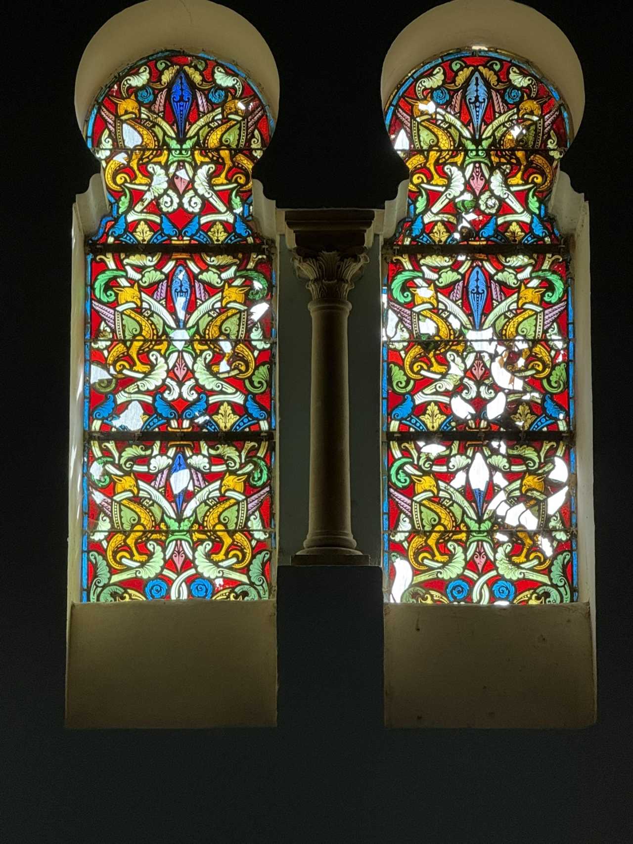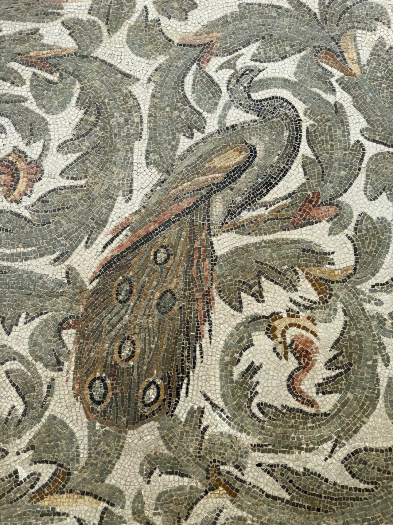 To render different blues on peacock feathers, glass was used, rare and precious at the time.