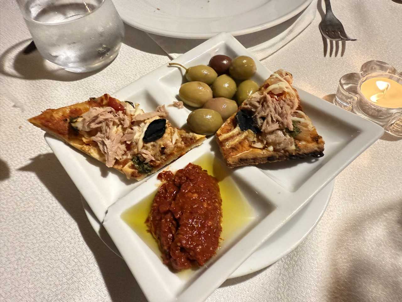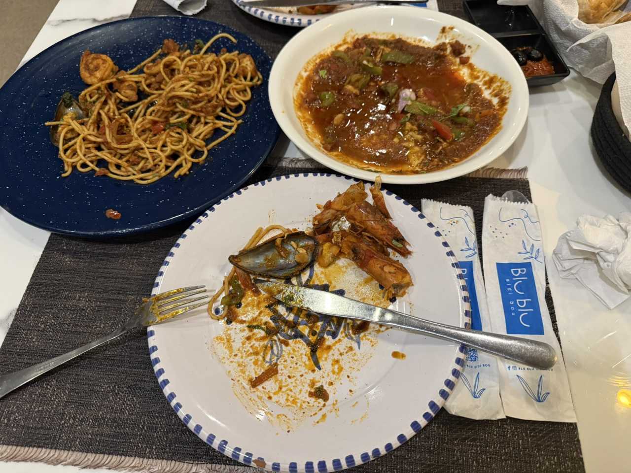 We were tired of walking and skipped the leader’s recommended spots, blindly chose a nice-looking place upstairs on a semi-terrace; very comfy. Restaurant name BLU BLU; tastes were good~
