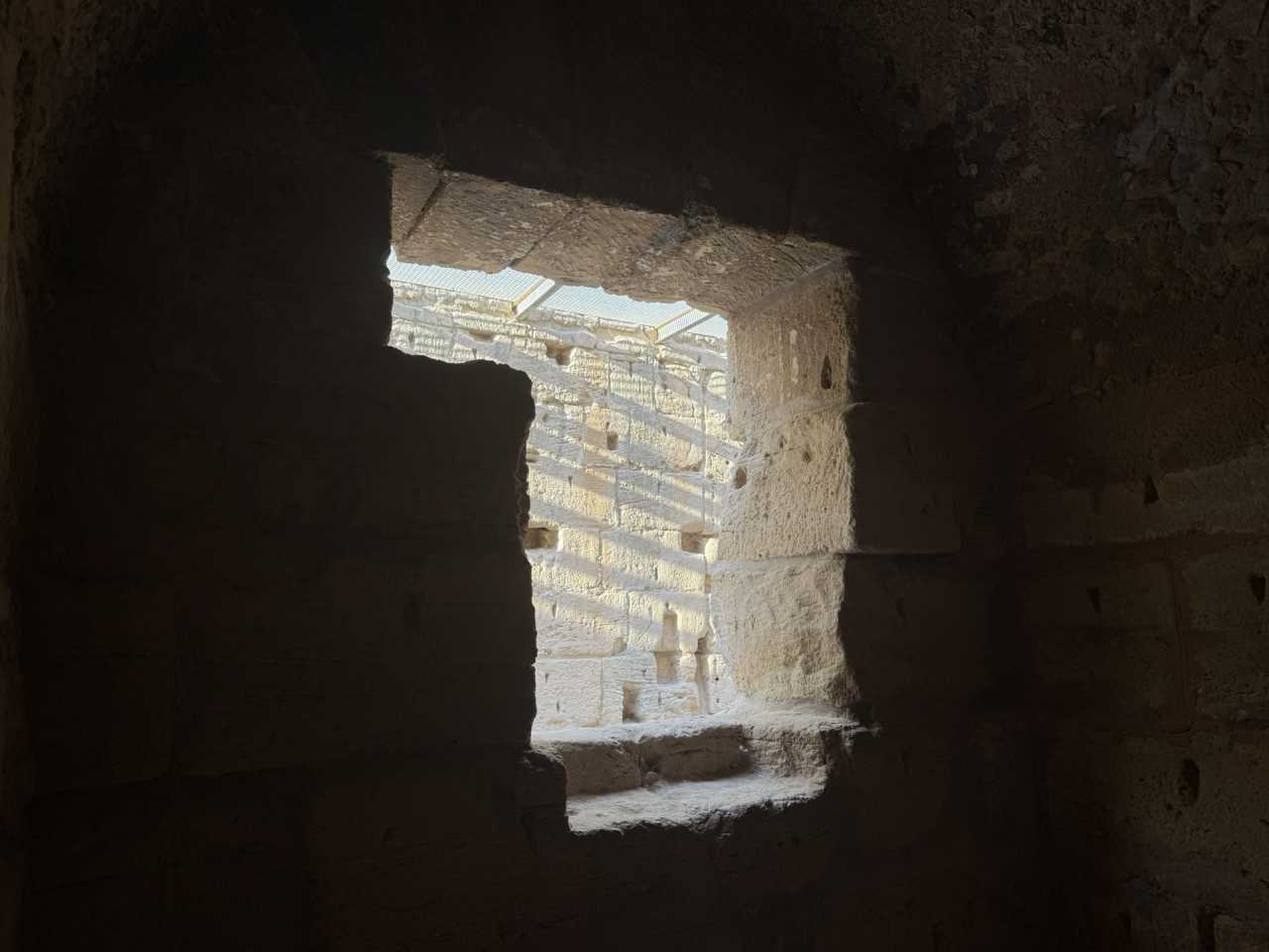 There were mechanical devices here. Beasts were released from below onto the ground; gladiators entered from above.