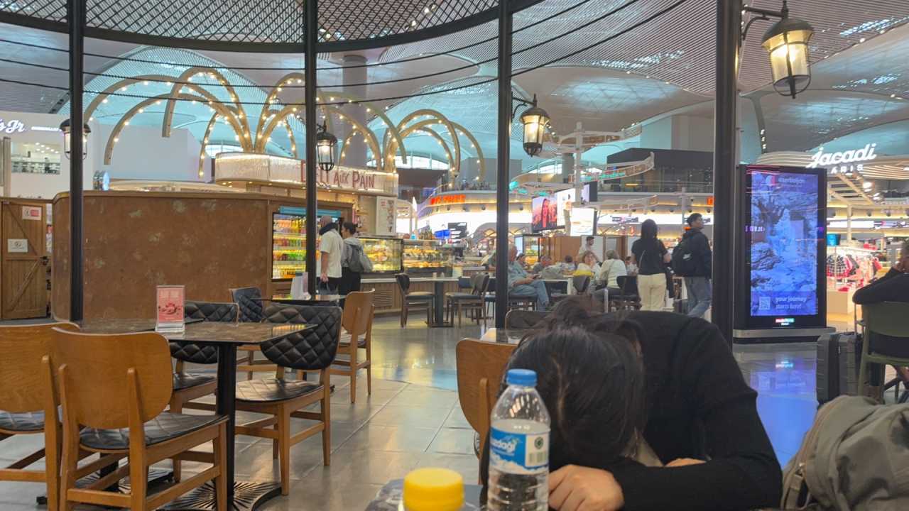 Istanbul AirportSecond leg began; Turkish Airlines meals were tasty. Didn’t expect a full flight; our plan for two people to enjoy three seats fell through. The African lady’s scent was a bit... but it was only three hours; endure...