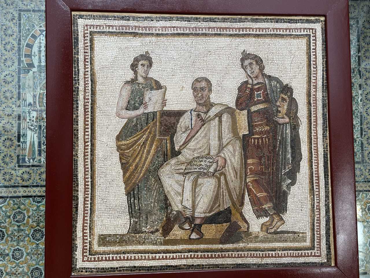The museum’s treasure “Virgil the Poet”: Virgil in the middle, the muse of history on the left, the muse of tragedy on the right. The scroll in Virgil’s hand clearly shows “Aeneid,” confirming authorship and holding high archaeological value.