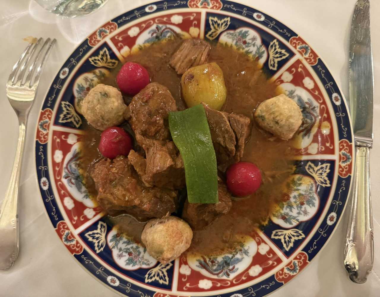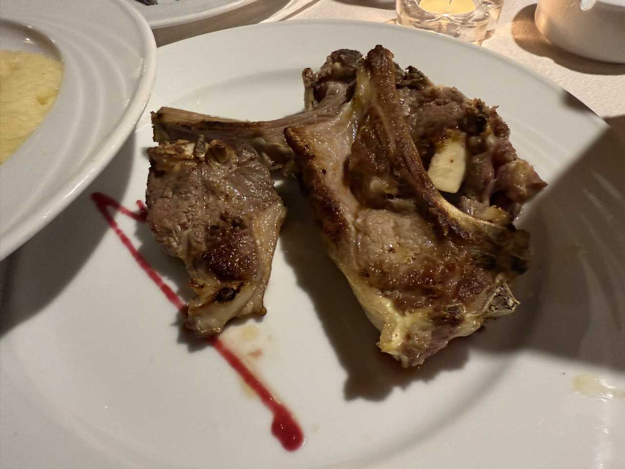 We were late and didn’t catch friends for chat. The restaurant had ancient Roman vibes with live music; the volume was a bit heavy. The lamb chops were bloody and too tough...