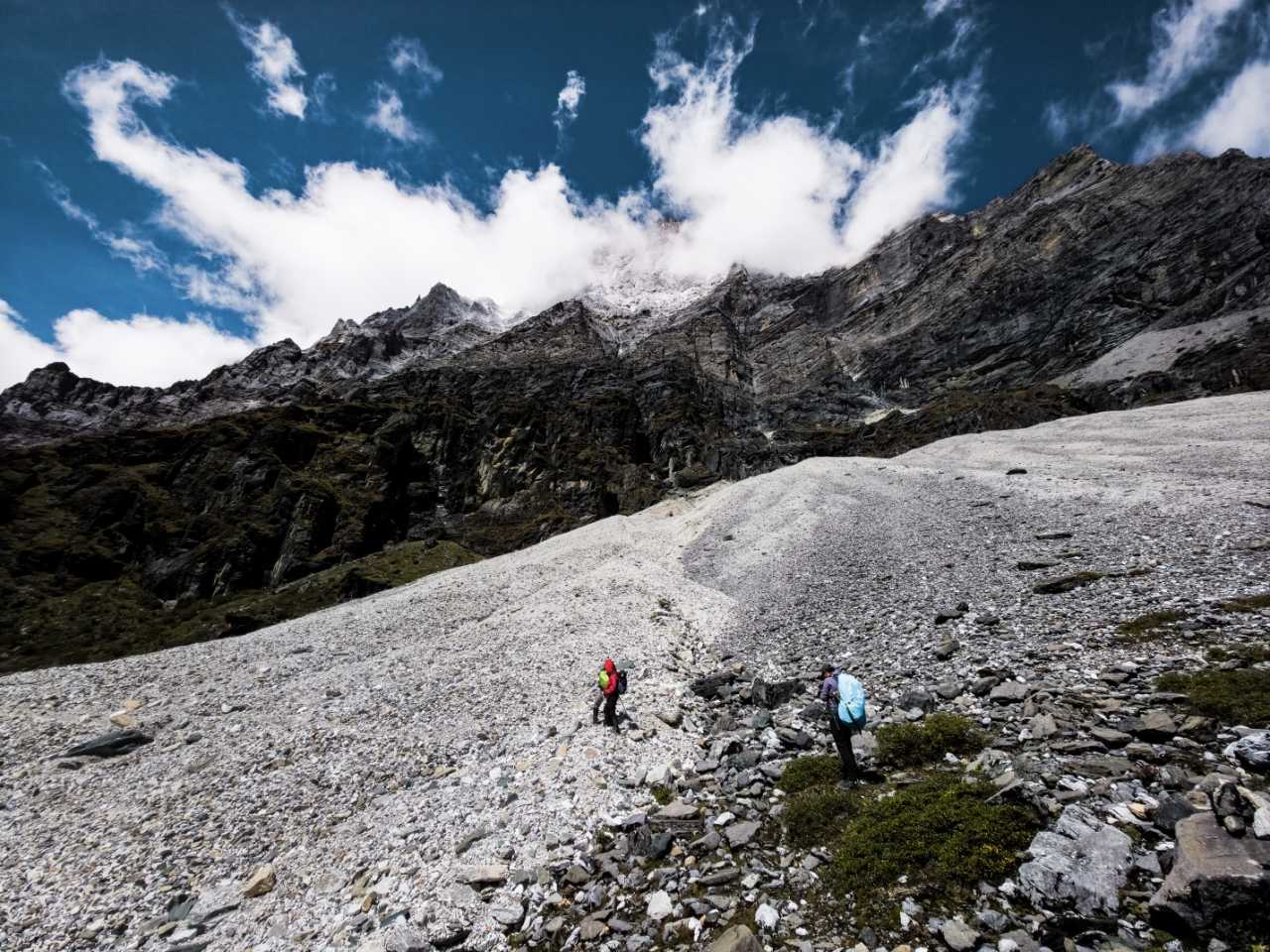 There was a section of gravel slope here, actually formed by glacial movement - a lateral moraine ridge. I suddenly thought of the EBC circuit you did in Nepal last year. You said you were tortured by this kind of glacial gravel path and would never believe the lie that "although EBC is high altitude, it's basically flat" again.