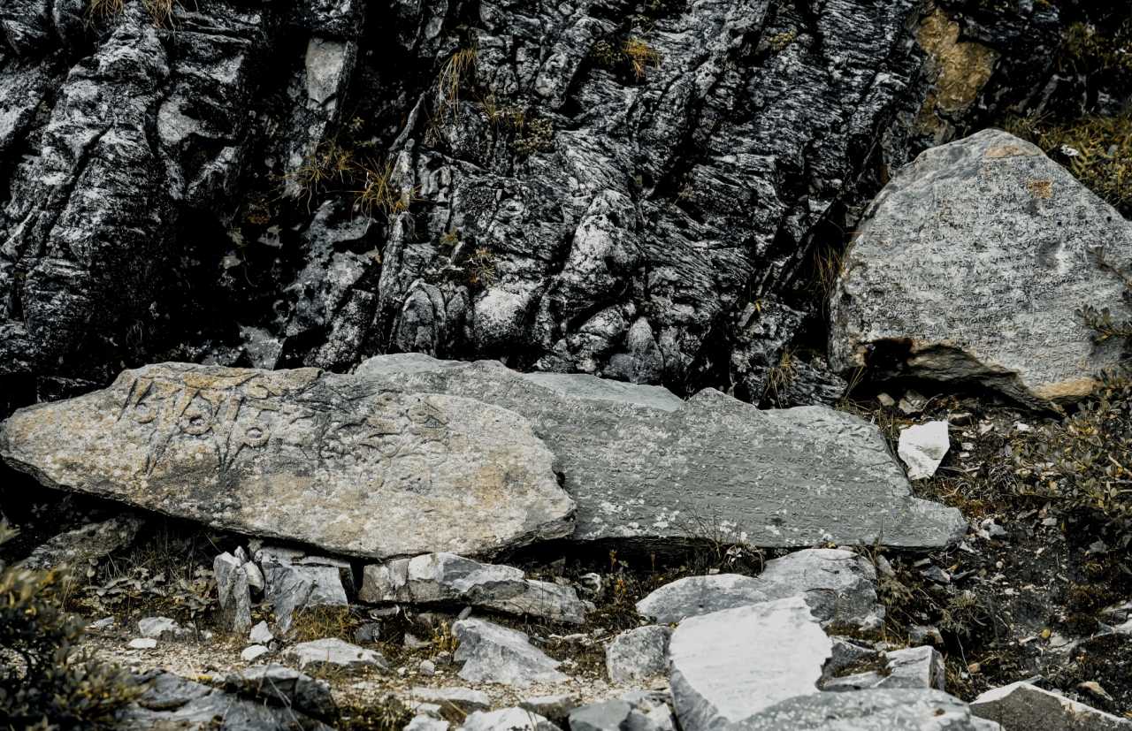 I thought for a long time but didn't seem to have any worries, so I simply bowed a few times. I pondered that worries are extensions of "self-attachment." If "self-attachment" could be as easily discarded as throwing something away, why would so many people in this world be unable to let go? Then I turned around and saw mani stones carved with the "Six-Syllable Mantra" quietly basking in the sun.