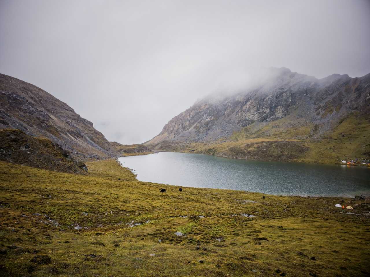 Boyong Lake camp is theoretically the highest elevation and most scenic camp on the entire great kora route - but this theory is completely based on good weather. The Boyong Lake I saw was just an unremarkable small lake. This was my disastrous start to the first day of the kora.