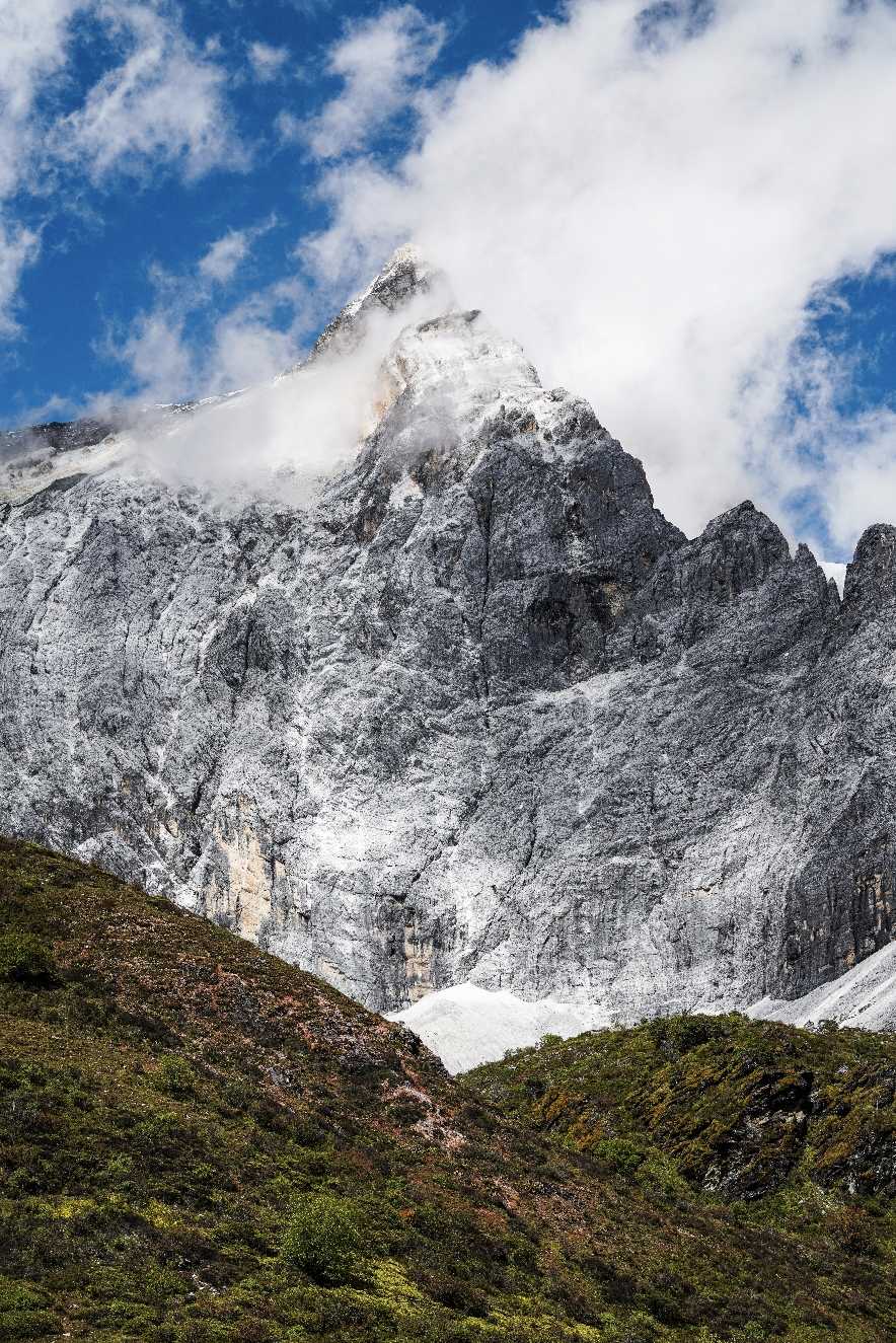 Daocheng Yading Scenic AreaThrough my alpine sunglasses, the snow mountains became gentler, putting aside their divine majesty and willing to greet me softly. I lingered at the pass for a long time, completely changing from the previous days' mechanical, head-down rapid pace. I wanted to completely let go and return to my favorite state - getting close to the sacred mountains and touching nature.