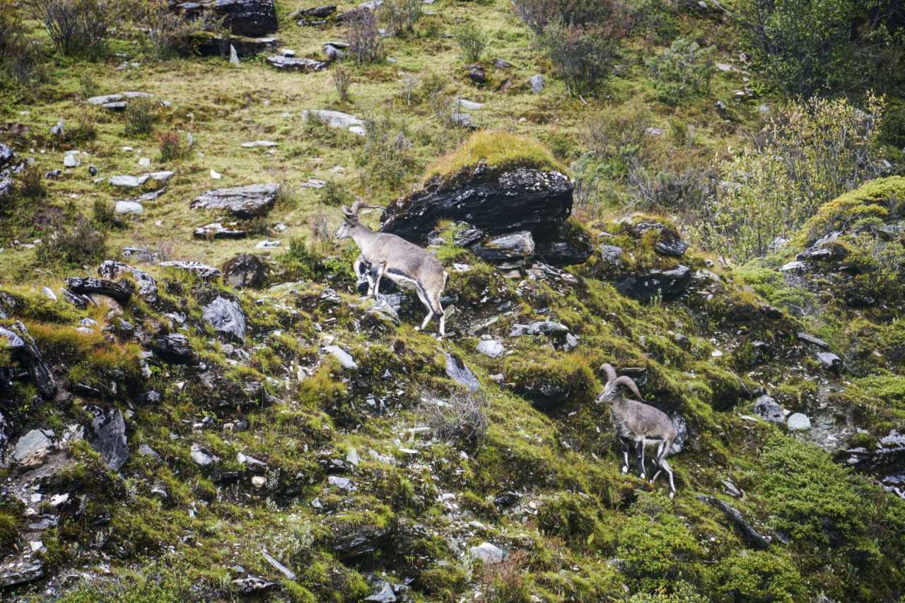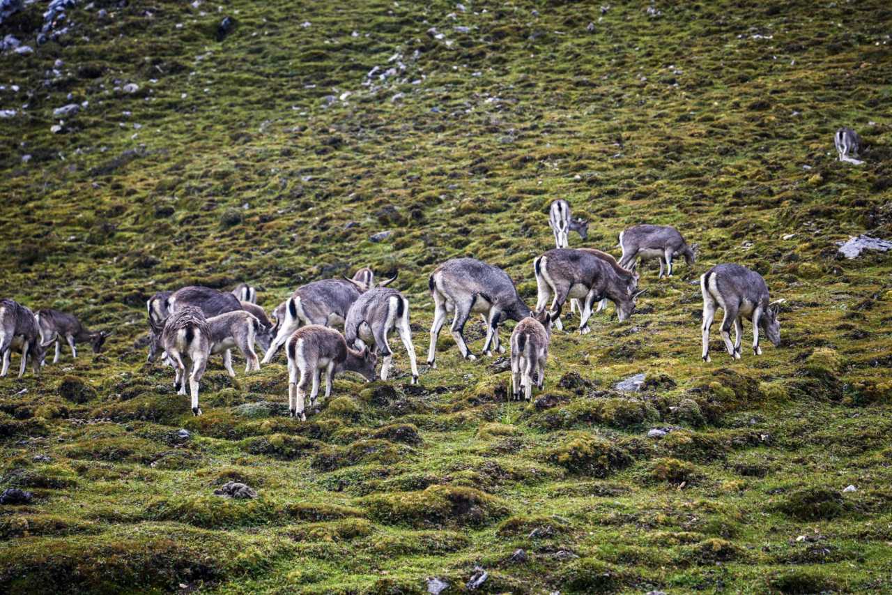 They climbed too fast, and with my poor eyesight, I couldn't keep up with their movements even with my eyes. I was always accompanied by companions' exclamations: "Ah, look, bharal!" Then following their wildly pointing fingers, I saw some shadowy figures.