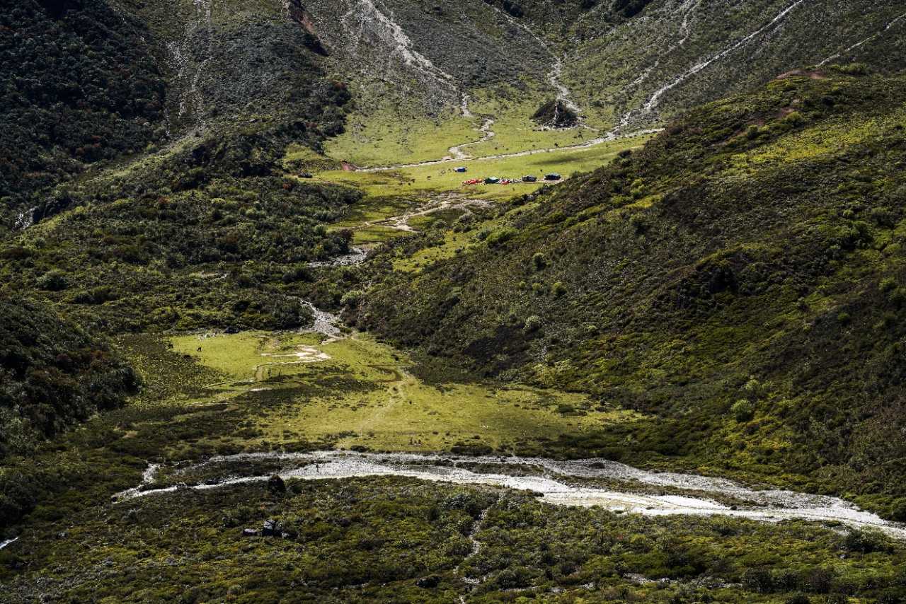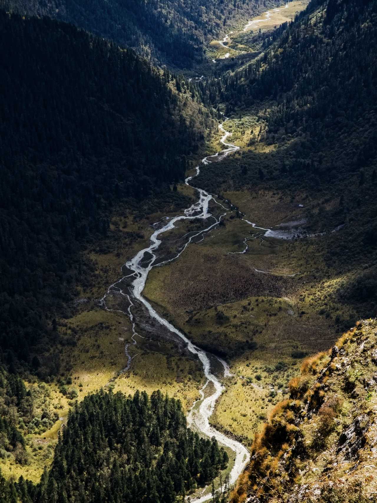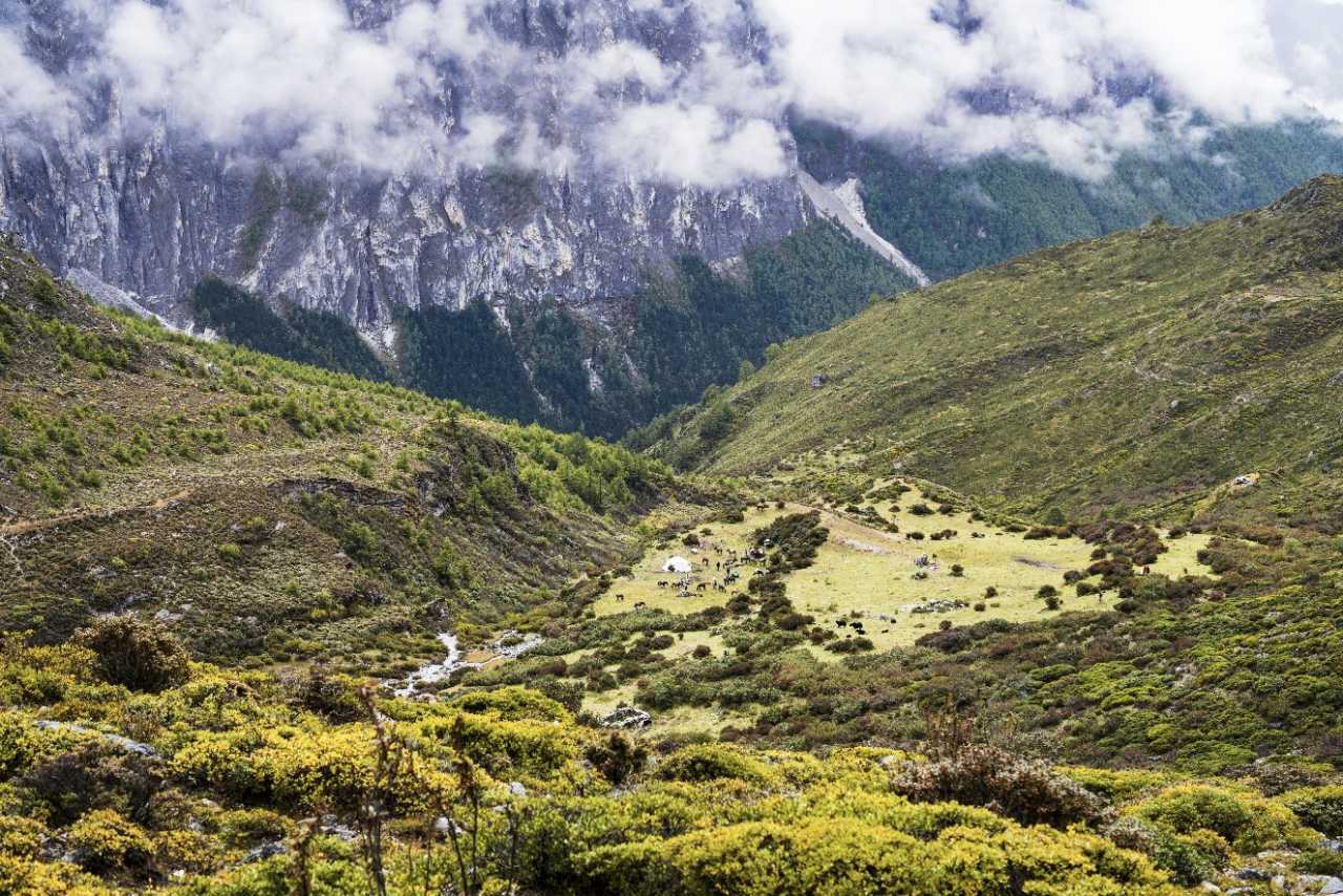 From high above, I overlooked a flat natural pasture - Wanhuachi Pasture where most hikers choose to camp. This is where several hiking routes including the great Yading kora and Muli Mountain-Sea Route converge. In peak season, it's said that hundreds of tents might appear simultaneously.