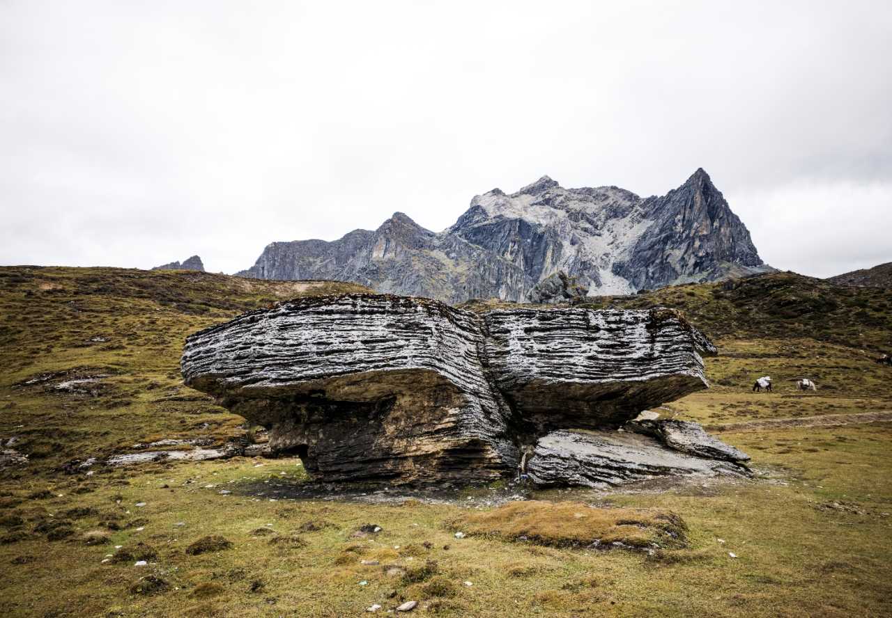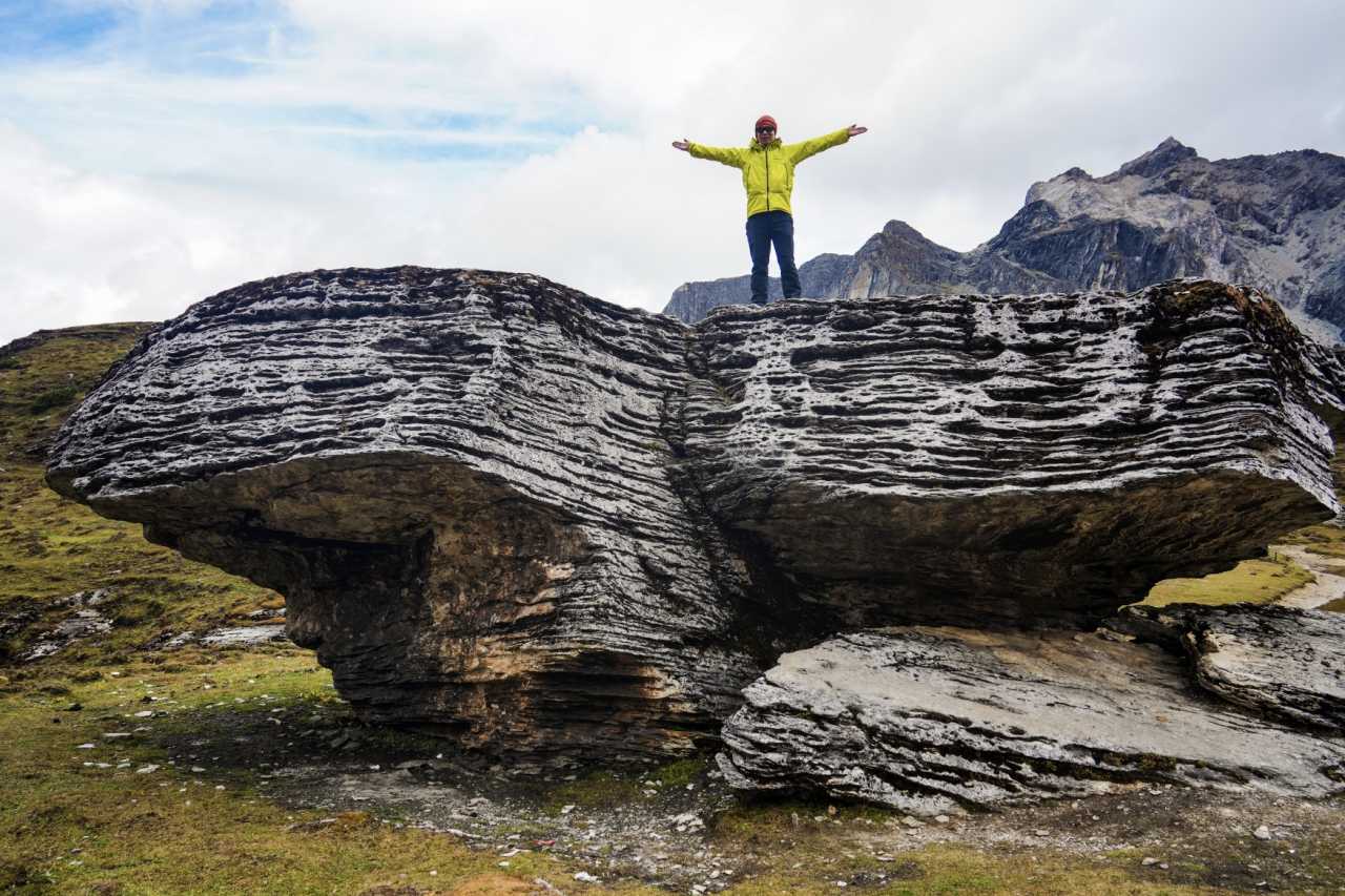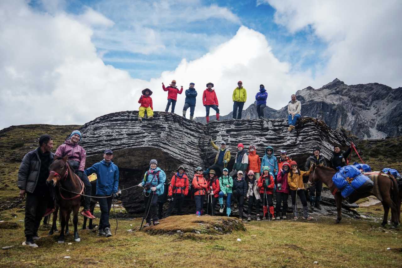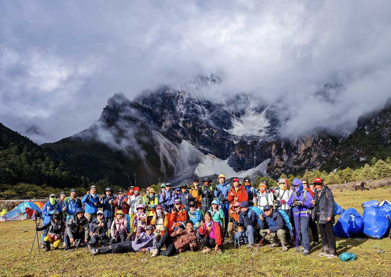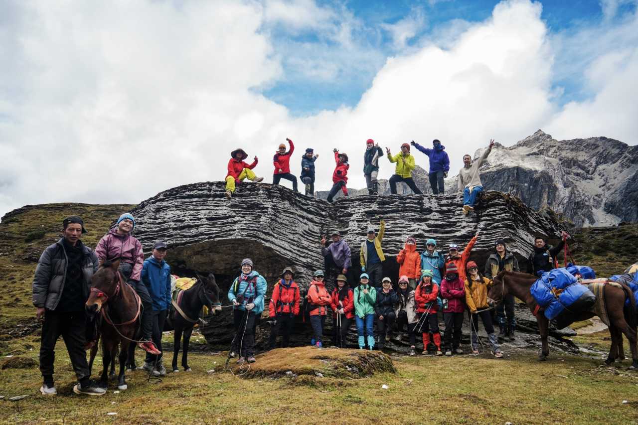 Butterfly Stone, named for its butterfly-like appearance, has special significance on the hiking route. A historically famous explorer, anthropologist, and naturalist took a classic photo here. Later, he revealed this hidden and magnificent corner of the earth to the world, and his academic papers and expedition writings became the inspiration for James Hilton's creation. Taking photos at Butterfly Stone to recreate the classic is a ritual every hiker who reaches here must complete, including our large group.