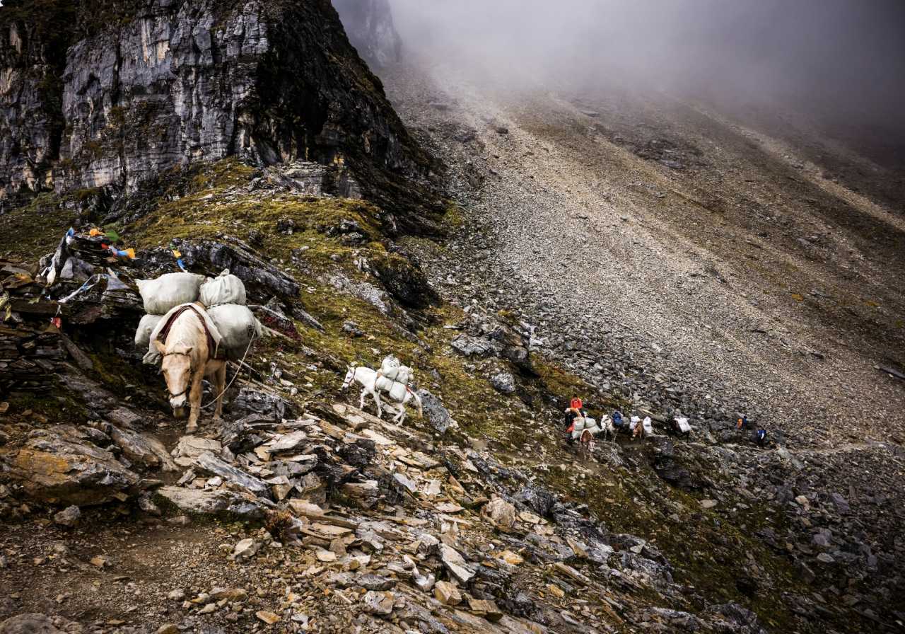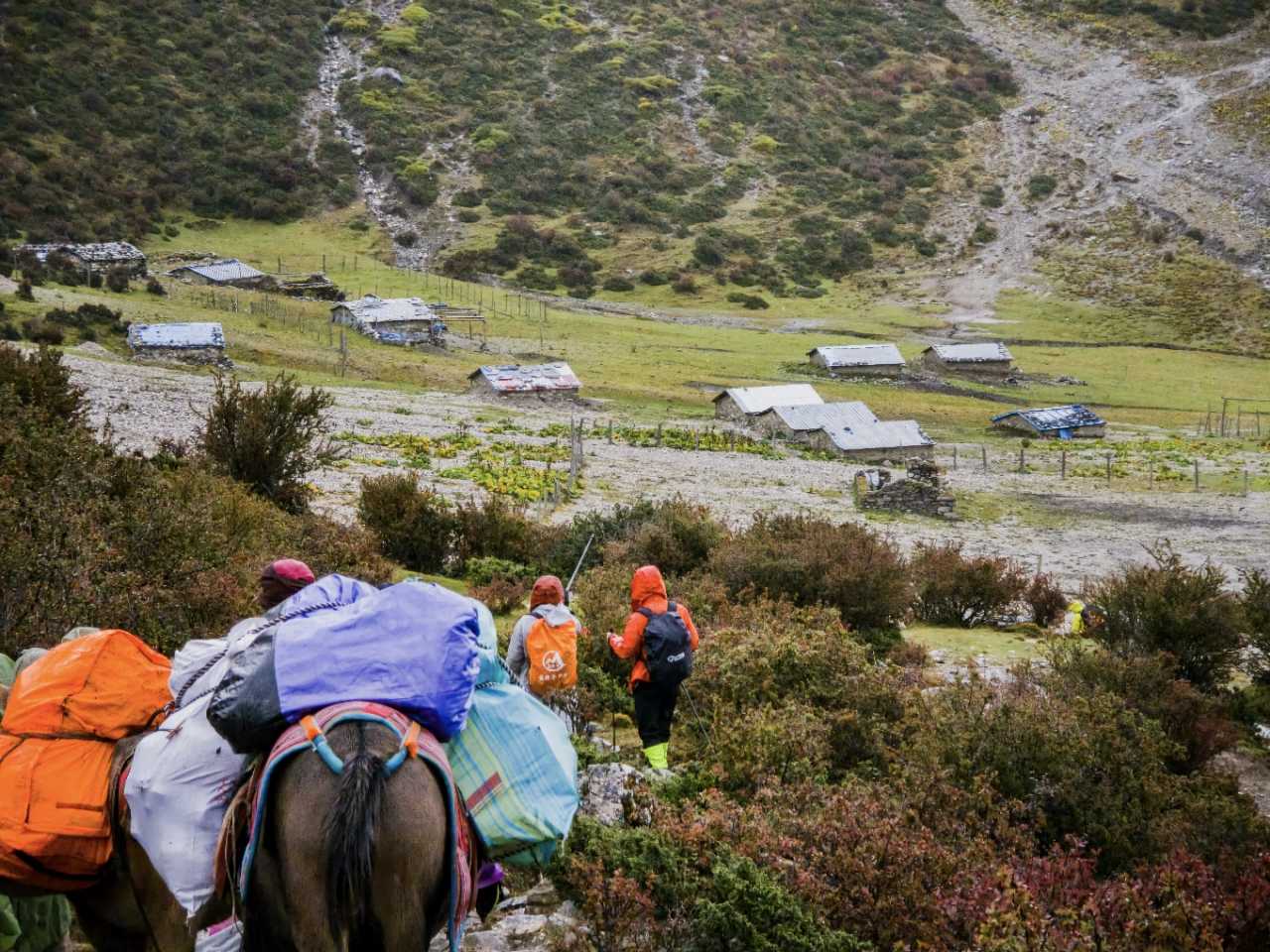 The admirable Tibetan assistants are responsible for collecting tents and luggage and transporting them by horse. They usually start later but walk very fast. Learning from past experience, I decided to appropriately control my forward speed, walking while calculating when the horse caravan would catch up and overtake me.