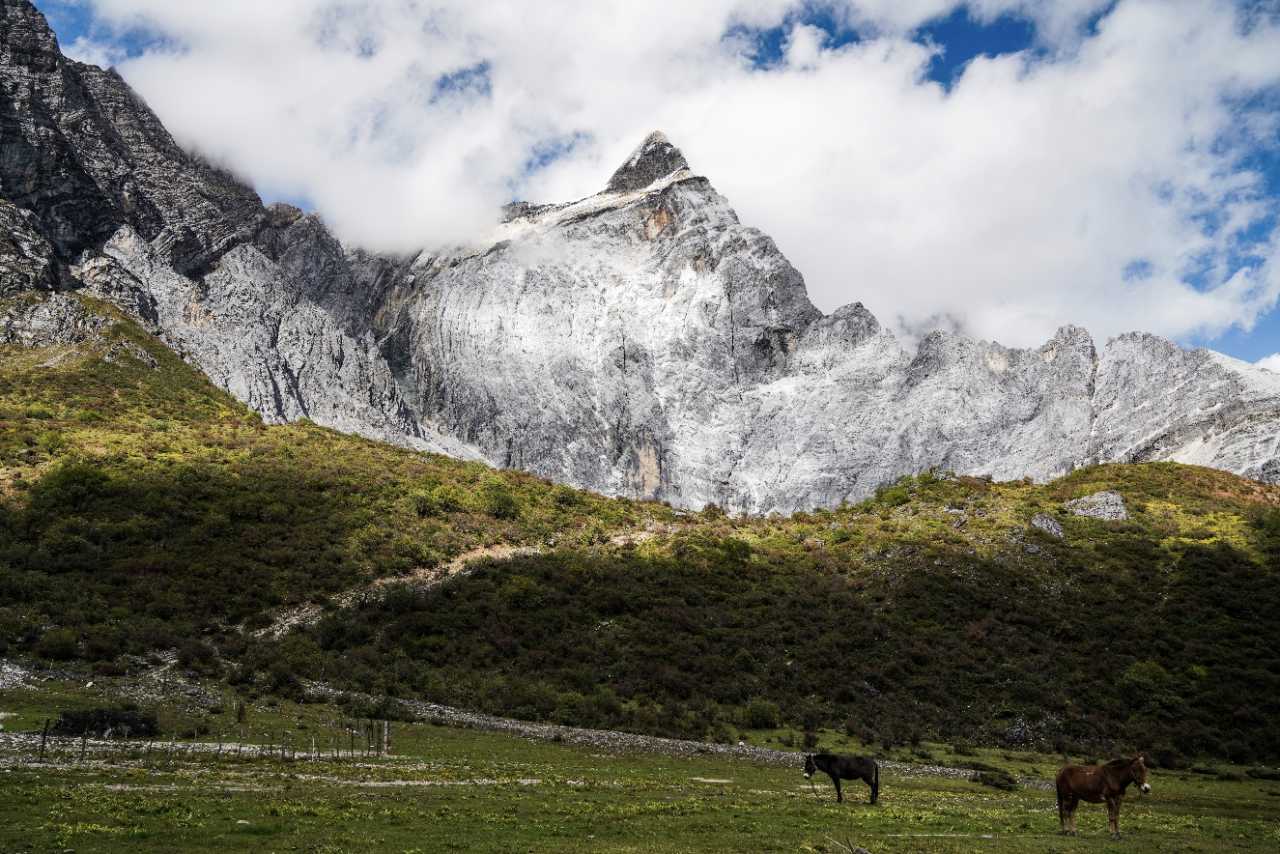 Daocheng Yading Scenic AreaDescending again in elevation, I faced a vast pasture called Xinguo Yak Pasture, with extremely lush water and grass - a paradise for yaks and horses, and the perfect choice for hiking teams to camp. The tall and mighty Yangmaiyong silently watches over the yaks, horses, and humans. In the eyes of the sacred mountain, yaks, horses, and humans are probably completely equal creatures.
