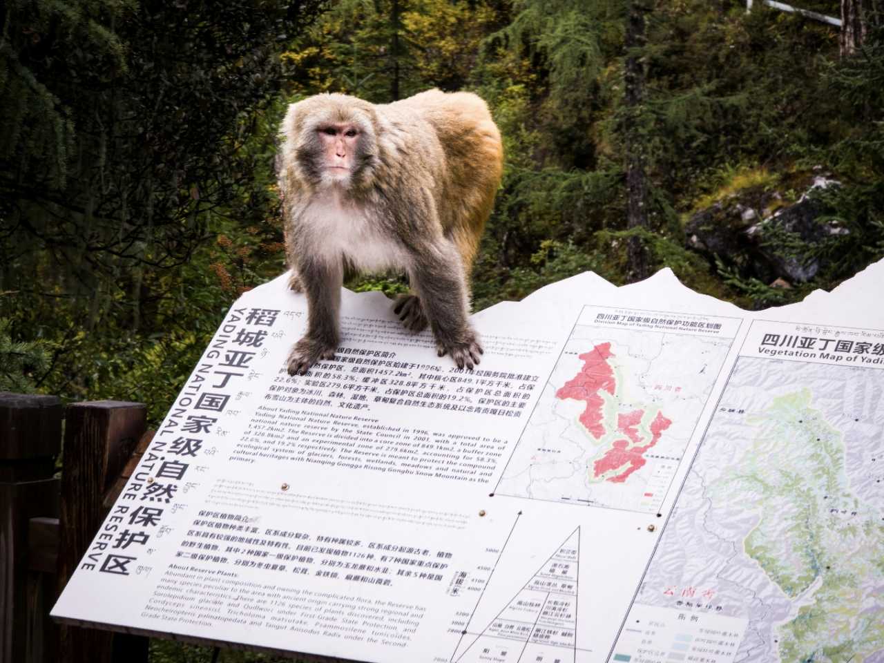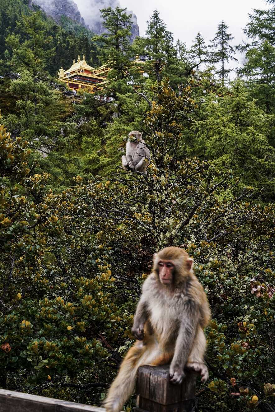 The monkeys in Yading are completely different, so well-behaved - they eat what they're given, don't grab if not given, and even pose cooperatively. Do they recite different scriptures from the Emei Mountain spiritual monkeys?