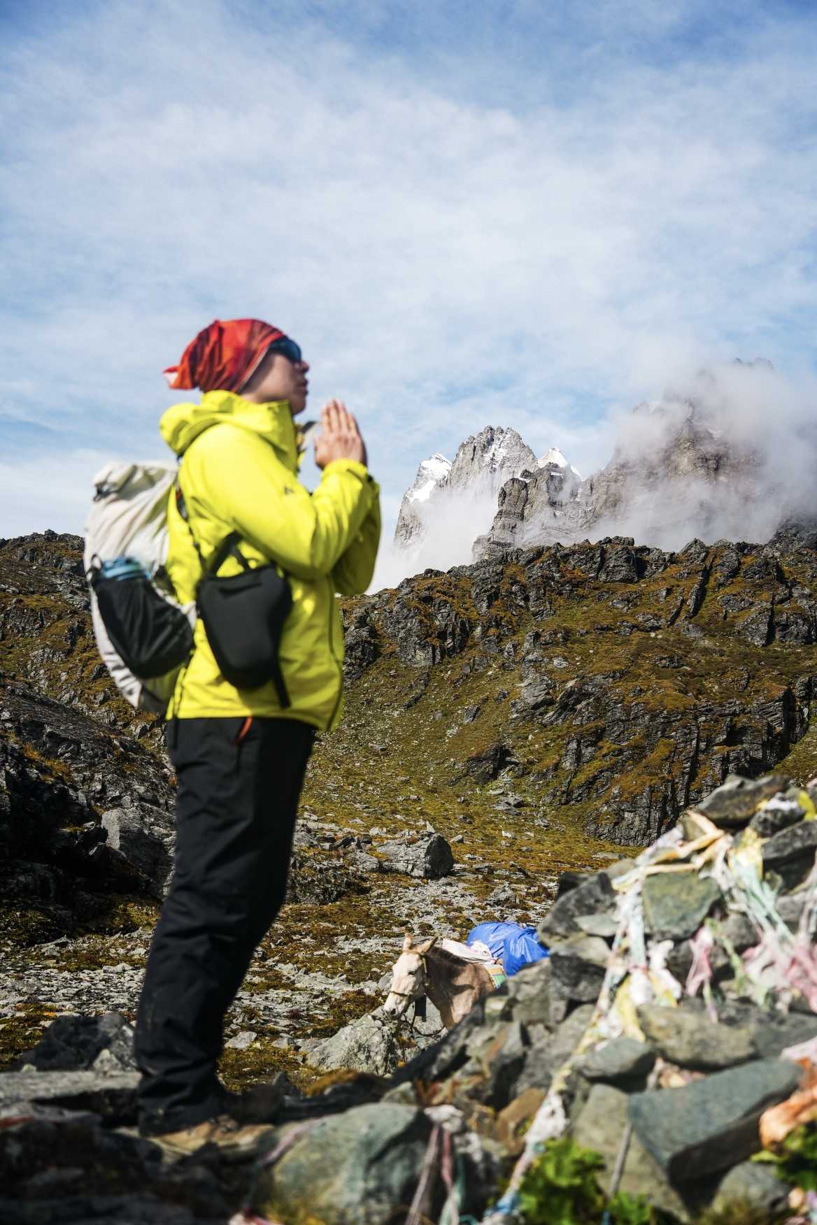 I rested at each small pass to adjust my rhythm, while looking back at Xianuoduoji again and again, but she still hid in the clouds, unwilling to show me her smile.