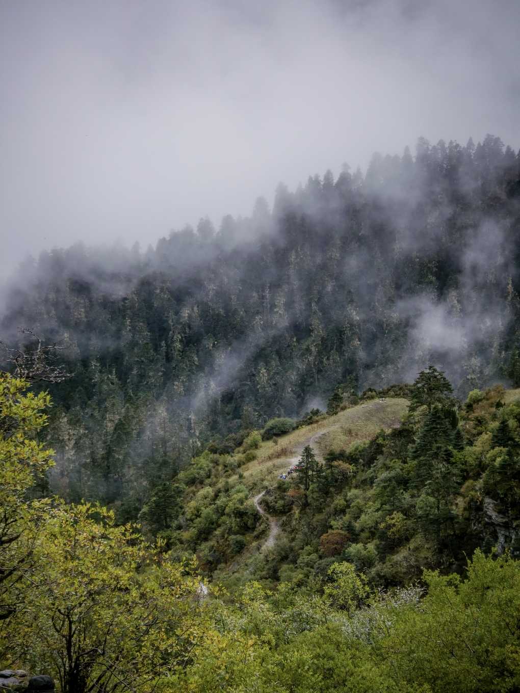 Daocheng Yading Scenic AreaI don't know if the forest was too dense and the path hard to distinguish, or if the guide was too confident in his "experience," or if we all collectively lost our minds? In any case, something unfortunate happened - the team seemed to have taken the wrong path. The head guide and local assistant actually had major disagreements about which way to go.