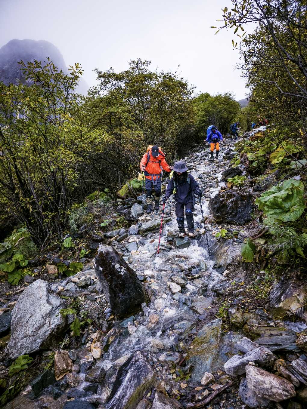 Xianuoduoji Sacred MountainAgain, like a machine that had its start button pressed, I walked mechanically and frantically, sick of the rain but having to accept it. No matter whether mountaineering or hiking, I've walked so many paths, but never once have I focused so intently on the act of "walking" itself. I seemed to have my own protective barrier, completely ignoring everything around me, just wanting to reach camp quickly.