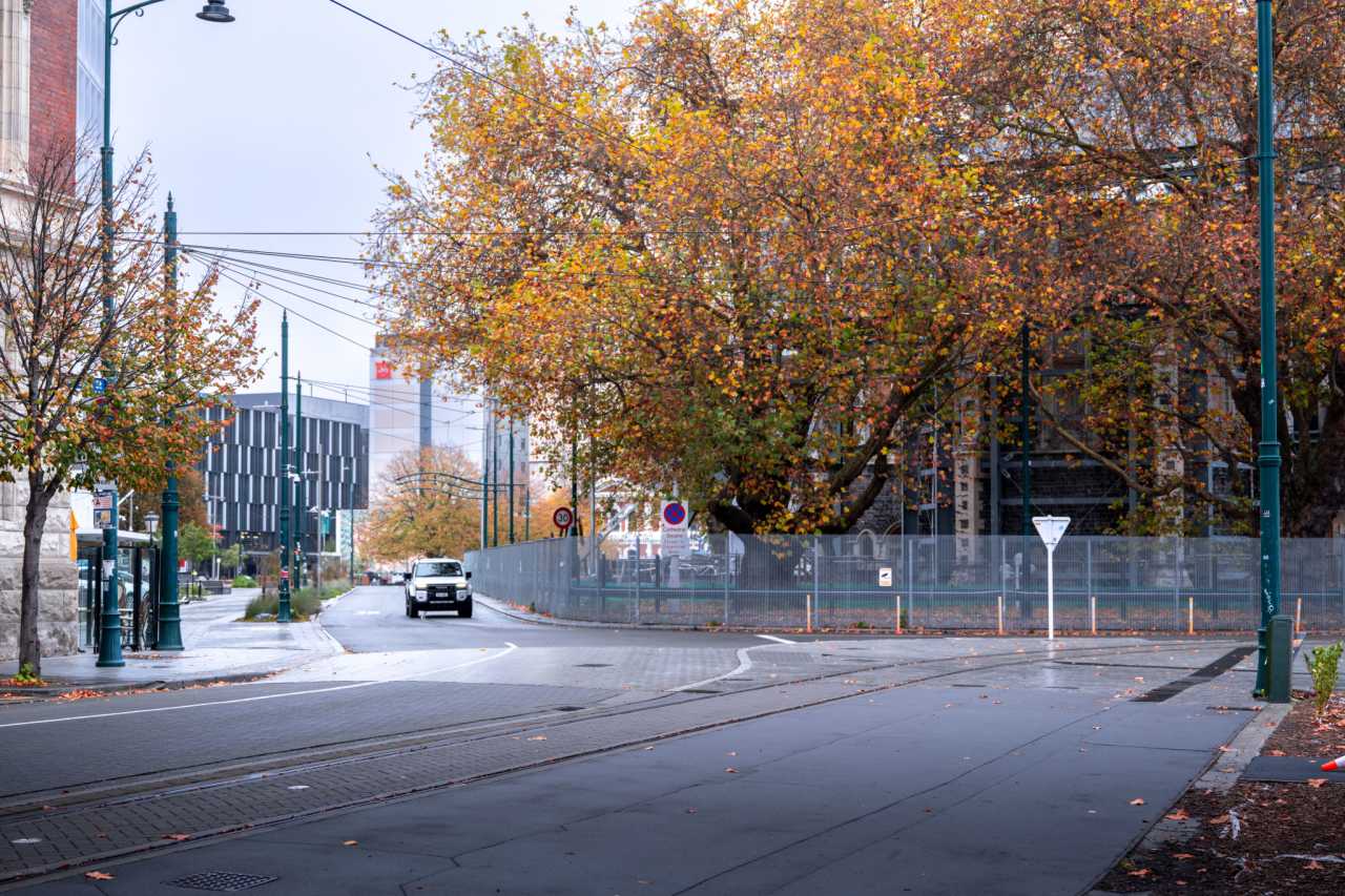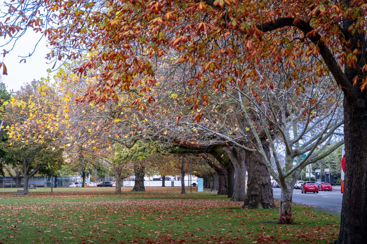 End‑April Christchurch is an autumn painting—gold and orange trees, drifting leaves, solemn buildings, wires like music notes, guarding trees—cool, clean air to inhale.