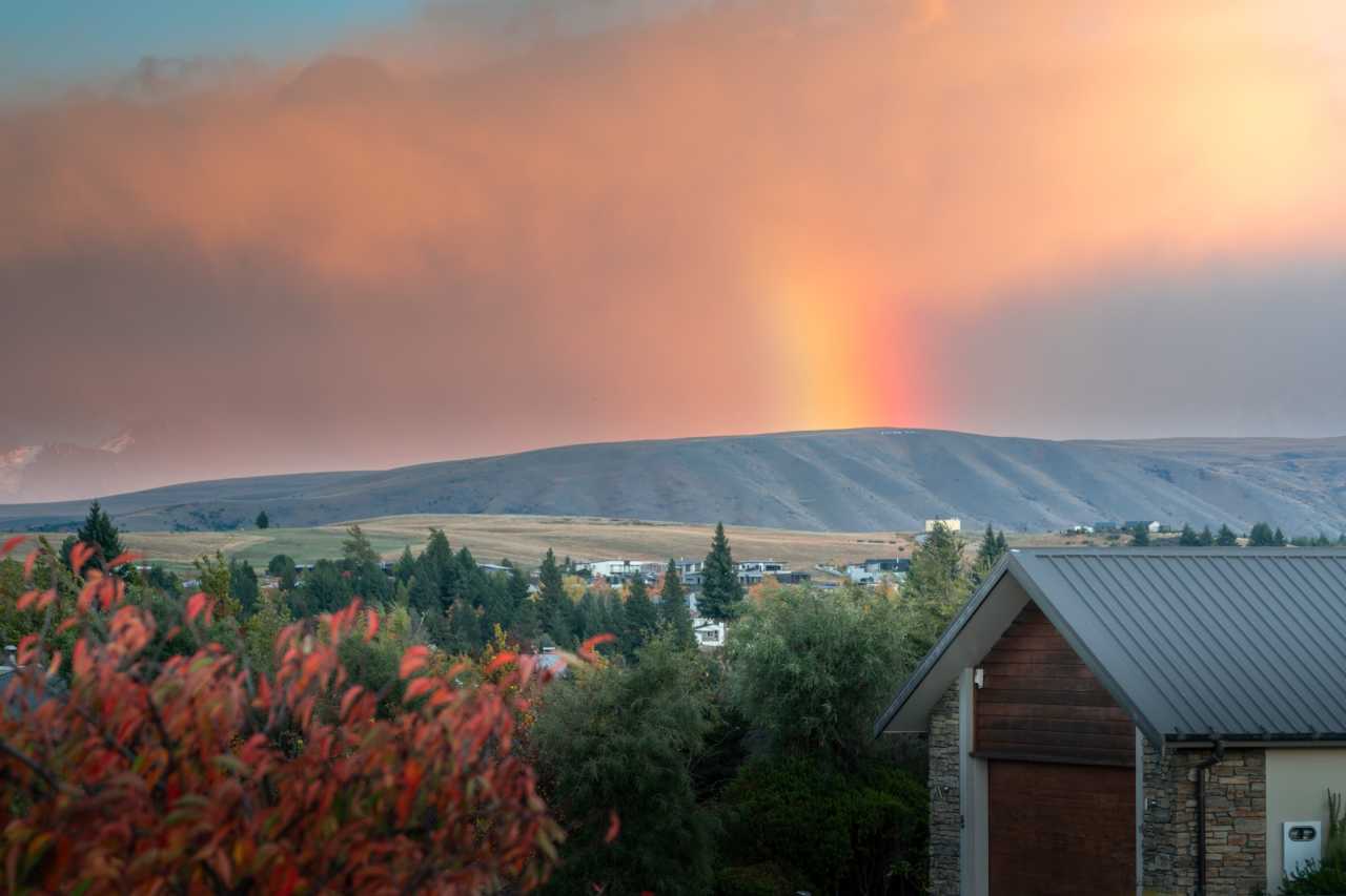 Lake Tekapo: 700 m alpine lake—clear blue, shrublands, autumn orange; views to Southern Alps. Braeview (1 Rankin Rise) managed by Book Tekapo—modern 3‑bed house for 6, free parking/Wi‑Fi, north‑facing lounge/terrace—sunlit lake and mountain vistas; near ski, hot springs, golf; close to Aoraki/Mt Cook; book 3 months ahead.