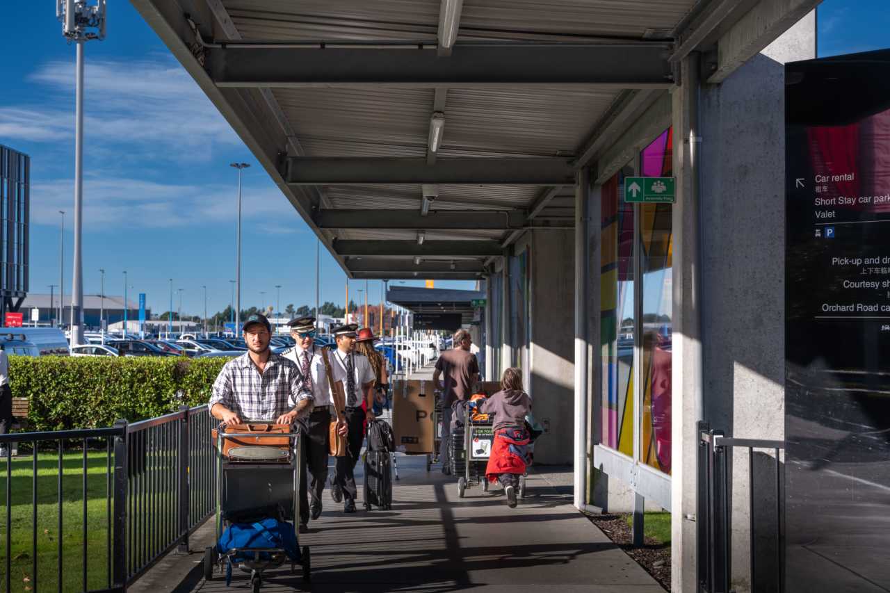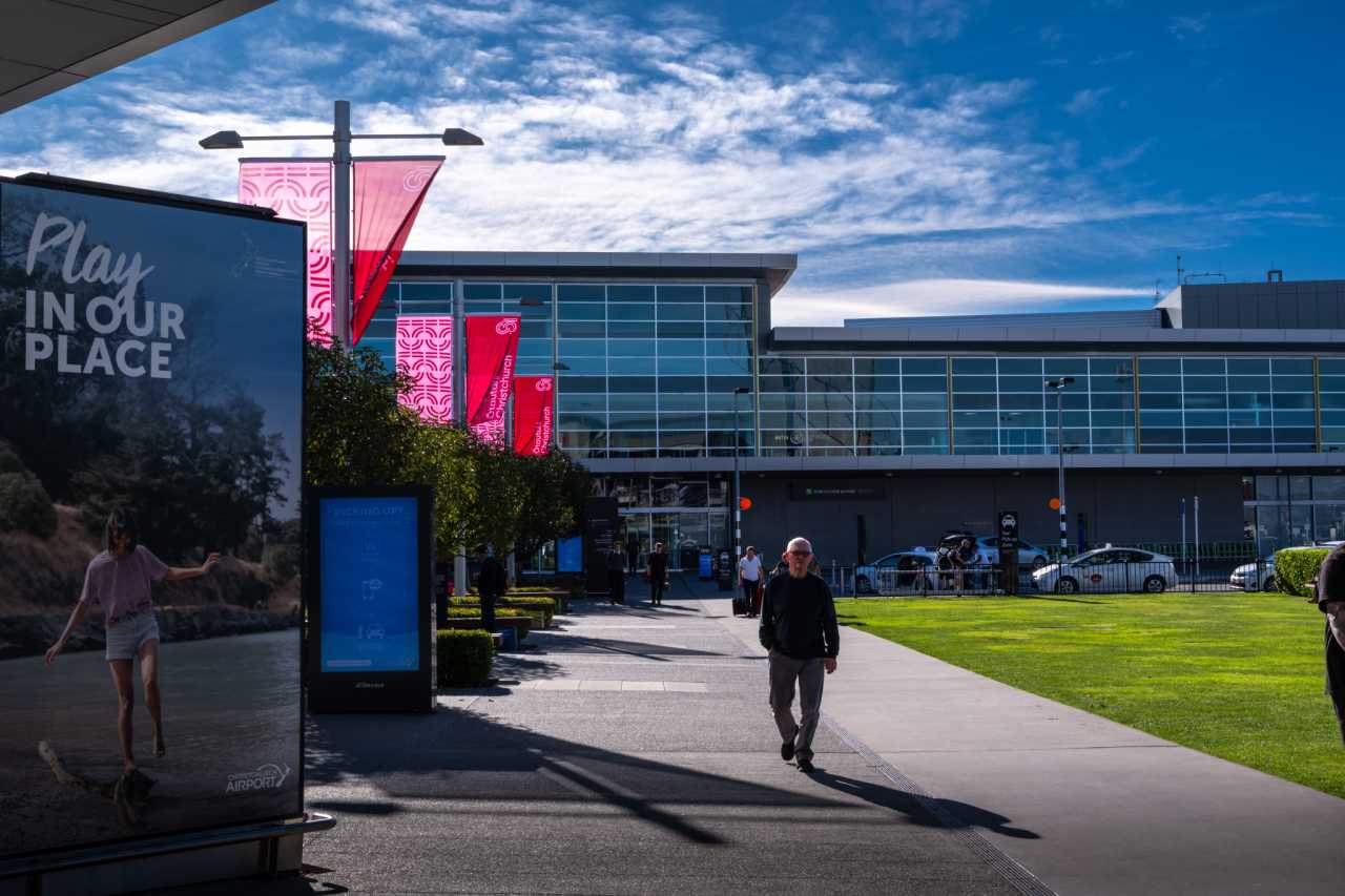 Christchurch International Airport is a major South Island hub ~12 km from the center (est. 1937). The open plaza and ample light suit catching shifting shadows; Māori carvings add local character. People on the move—farewells and arrivals—bring authentic emotion.