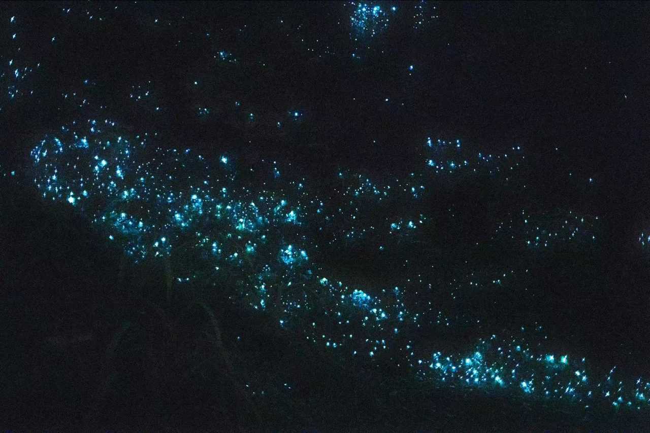 Glow Worm Dell: outdoor forest north of Hokitika on SH‑6—wide track; NZ glow‑worm larvae sparkle like a galaxy; best after dark—keep quiet and lights off.
