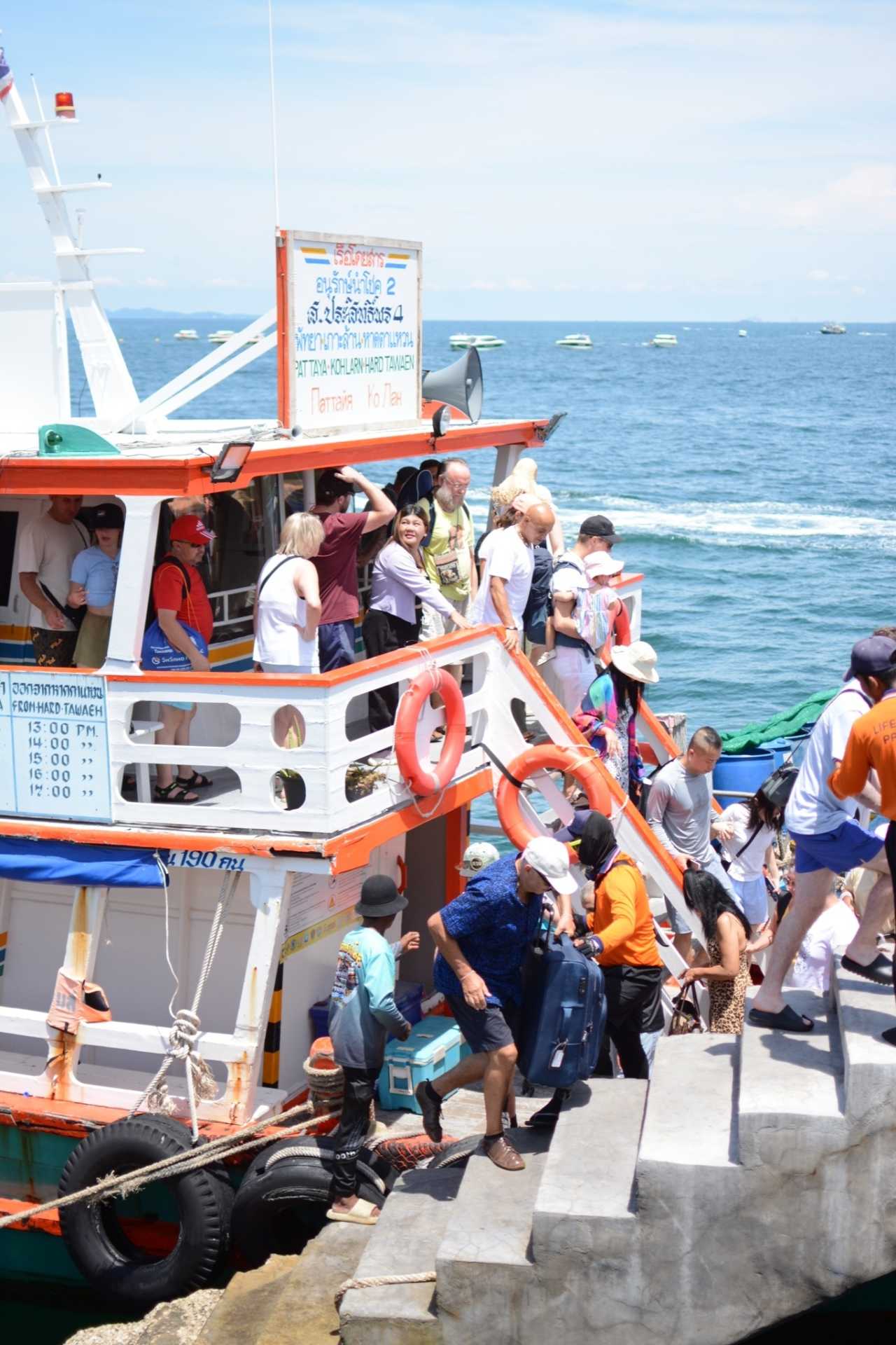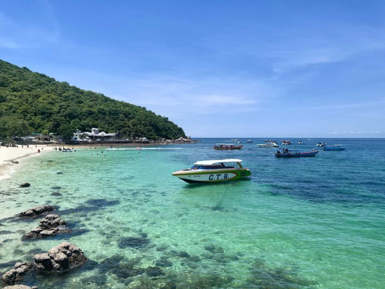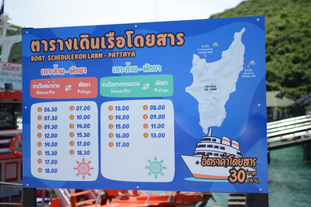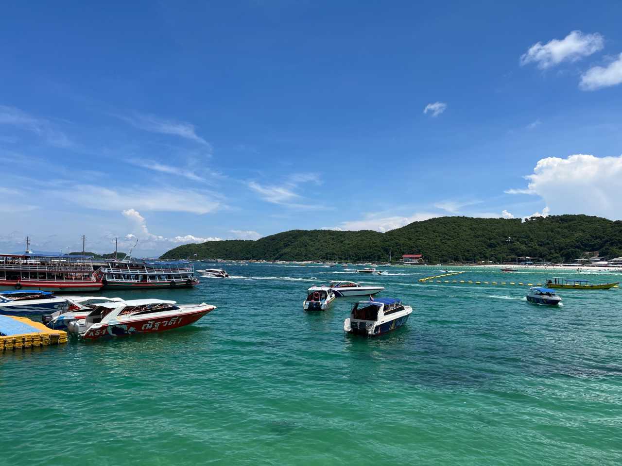 I personally loved it—the water is crystal clear and there are water activities. Take the ferry from Pattaya pier to Koh Larn; mind the departure times or you might wait an hour. It’s 30 THB/person—times are shown in the photos below. The island has multiple beaches; songthaews run on demand for about 20 THB/person. I recommend not riding motorbikes—don’t ask why. Always confirm what’s included and which beach activities are at, otherwise they might take you to another beach. Toilets: 20 THB/person; showers: 30 THB/person. Don’t try bargaining—some locals can be stern. Wear a bikini with a sun-protective cover for easy on/off—otherwise changing is a hassle. Despite hiccups that day, we saw a stunning sunset on the boat back.