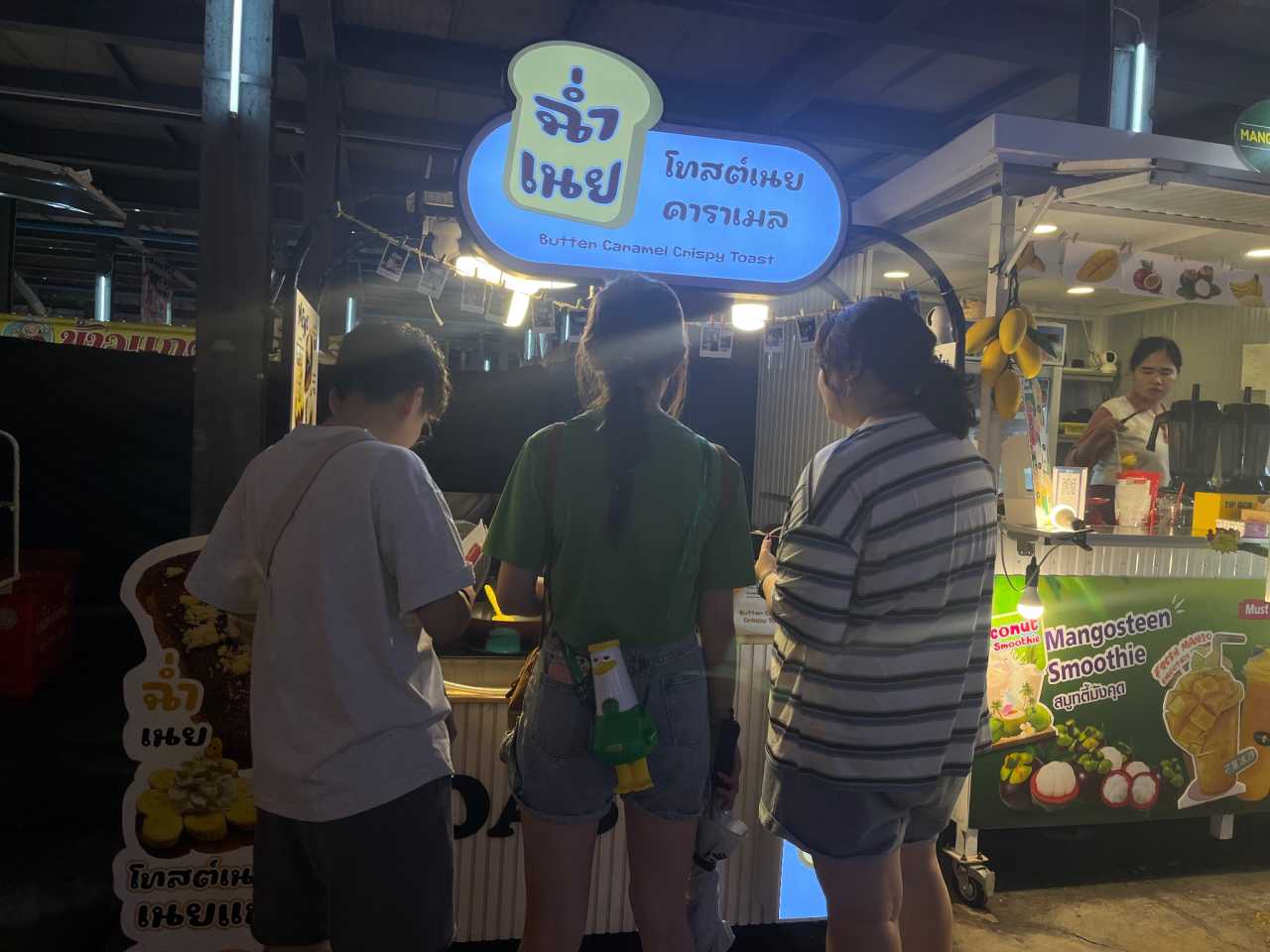 A night market near Chulalongkorn University—similar to campus night markets at home—with all kinds of food and heavy foot traffic. We tried some online-recommended stalls—some were decent, some not to our taste. Trust your eyes and instincts when choosing.
