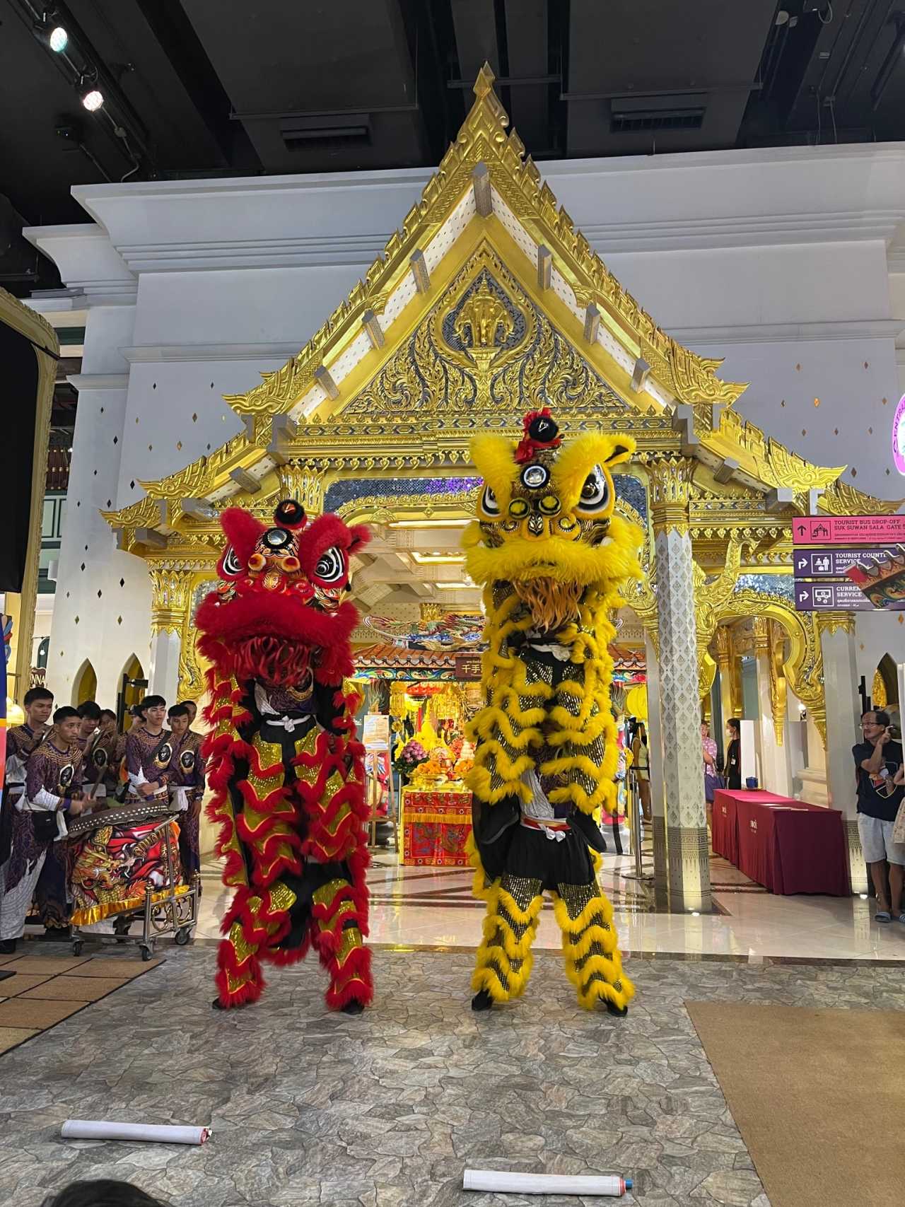 If you want to shop, stroll here—it used to be Asia’s top mall. Overlooks the Chao Phraya River, has a giant indoor waterfall, and Thailand’s largest Starbucks. Note: there are several “Siam” malls—be sure which one guides refer to. We didn’t realize there are multiple, so we wandered and couldn’t find brands we wanted. On the G floor there’s also an indoor floating market with various snacks. We even caught a lion dance (far weaker than back home). Tried a Cha Ba Dao drink—lemongrass region special (just okay)—and bought wax apples; oh, not cheap—maybe because it’s in a mall. In the end, you can’t help but sigh: the world is a gigantic China.