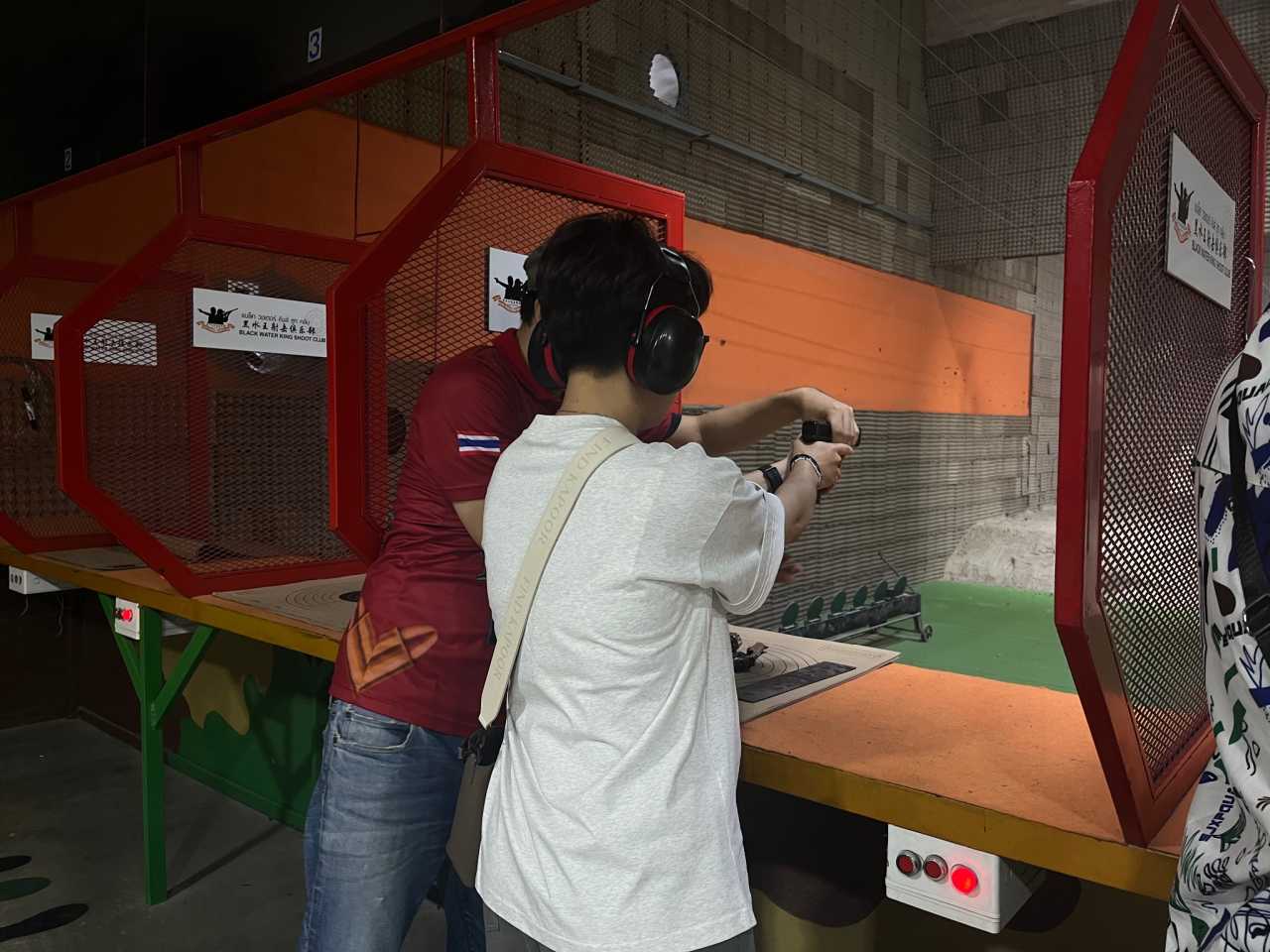 If you’re interested in live-fire shooting, give it a try. I took Package B—over RMB 400—for 30 rounds across 3 gun types, with one-on-one professional coaching. They even help you take photos. Handgun recoil is strong—pay attention to safety. I chose Blackwater King Shooting Club, but there are many options in Thailand.