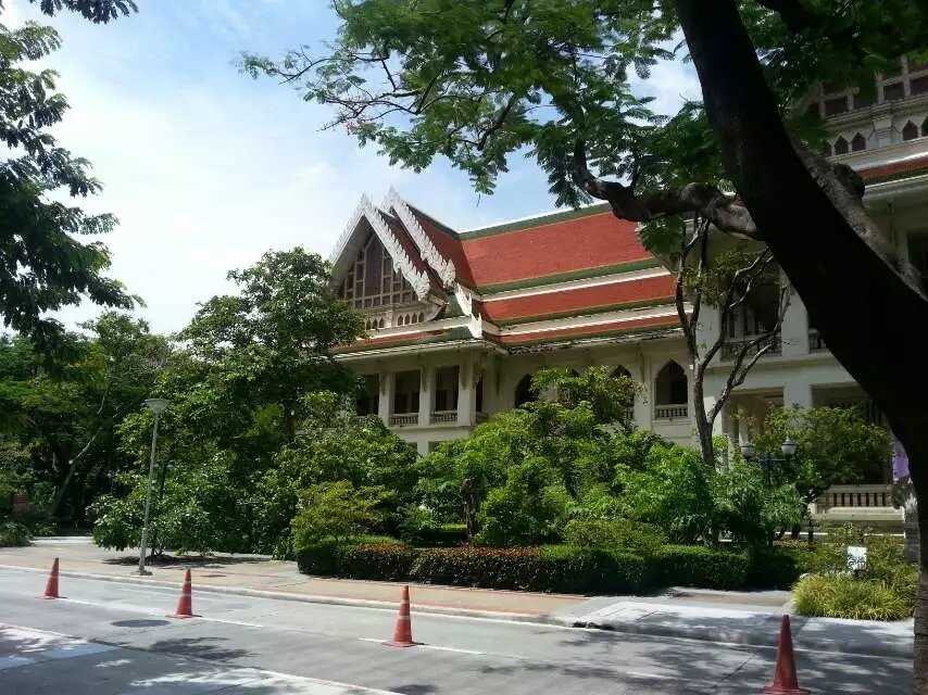 This is a famous university in Thailand called Chulalongkorn University. The buildings inside are very beautiful, and there are many Chinese students. It's said to be a very good school. Located in the commercial center, it's quiet amidst the hustle and bustle, with a distinctive style.