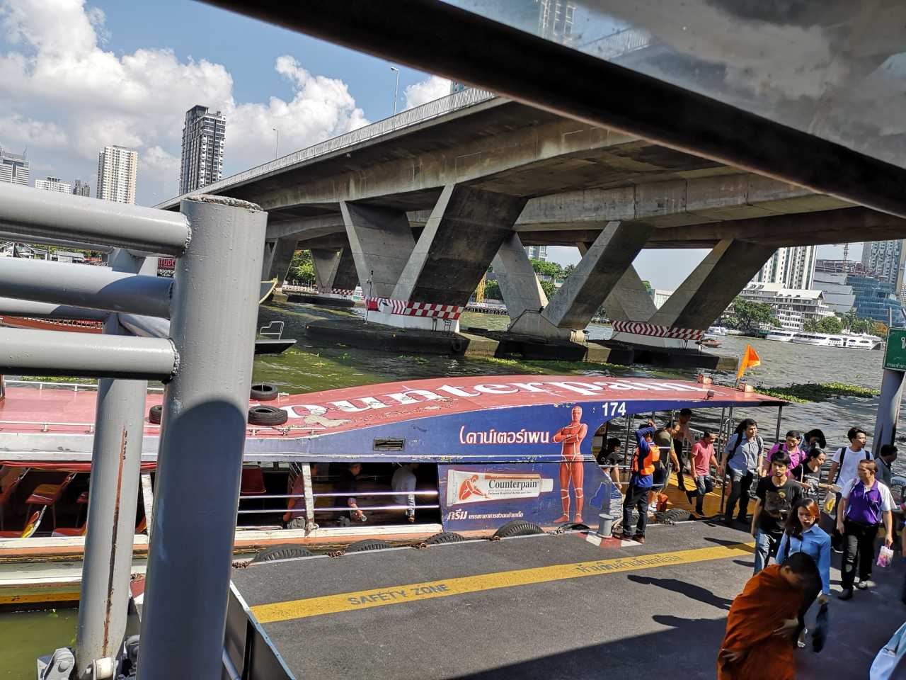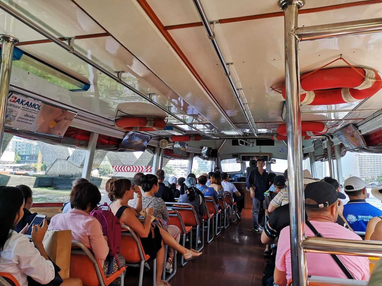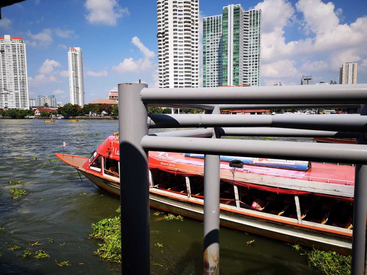Boats come in types—read carefully. The public boat (orange hull and canopy) is cheap: 15 THB per person regardless of distance (tickets are checked on board, though not as strictly as some bus conductors—several times we weren’t checked; don’t try to exploit it). It has nine stops. There are also blue boats, Chinese-style wooden boats, and hotel shuttle boats—know the differences.