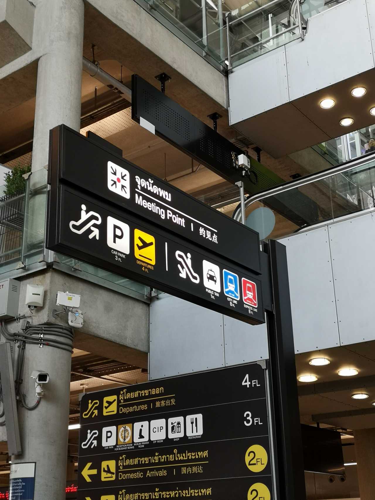 Arrived in Bangkok and waited for the Phuket flight. Airport signage looks like this and includes Chinese, so don’t worry if your English isn’t great.