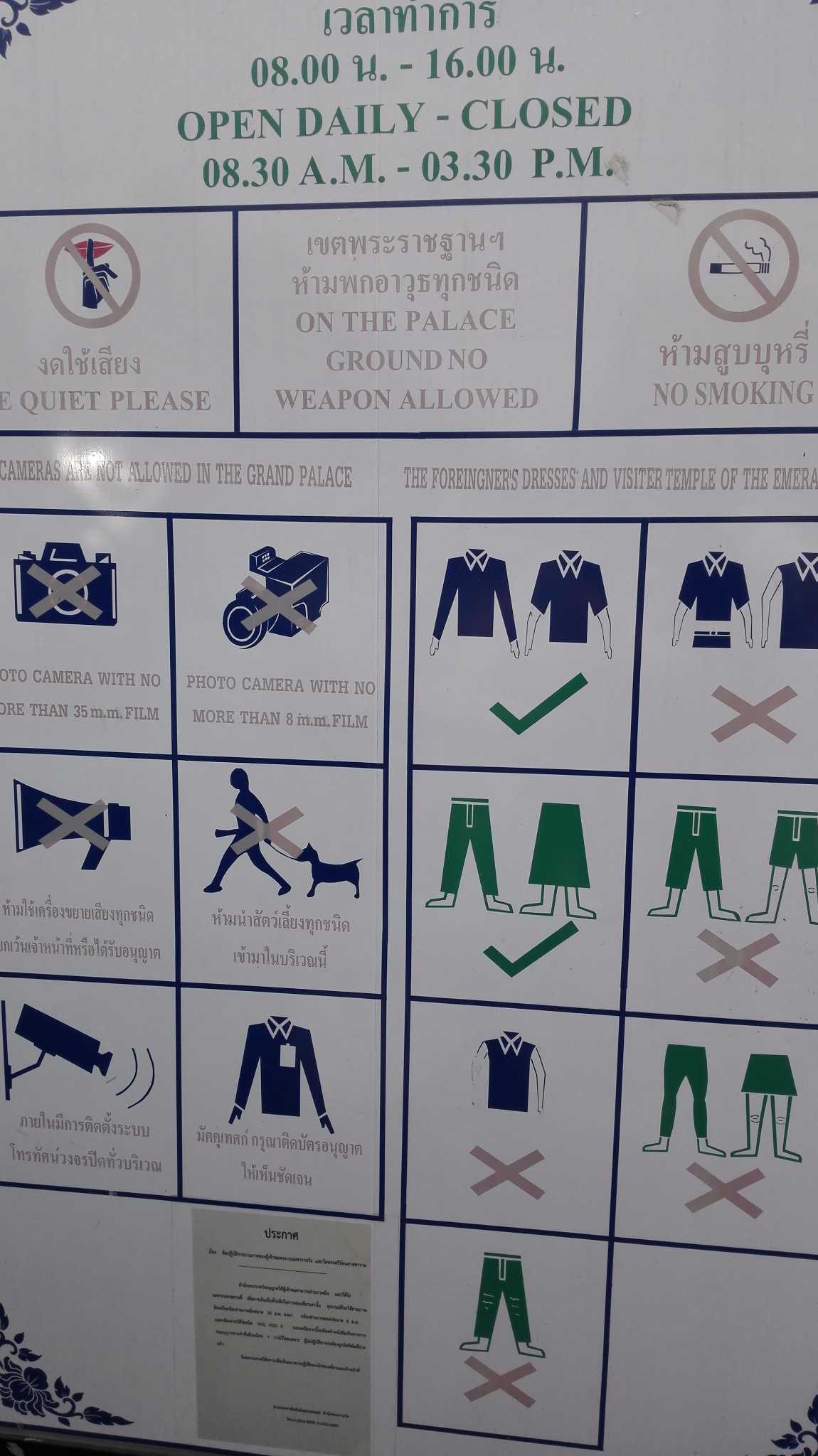 Bangkok Grand PalaceAfter the old king passed away last year, there are dress requirements for entering the Grand Palace, otherwise you have to rent clothes which is troublesome. Tops must have sleeves, no exposed back, pants must be full length, skirts must be below the knees, no sandals, preferably all black, but I also saw a few other colors.