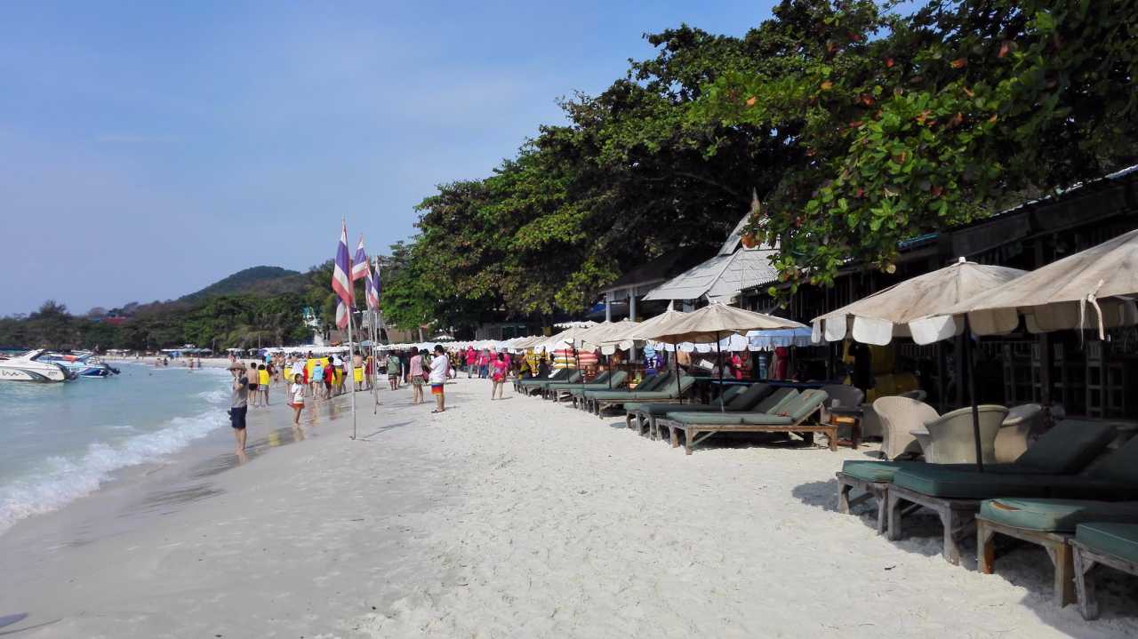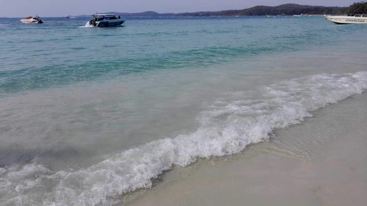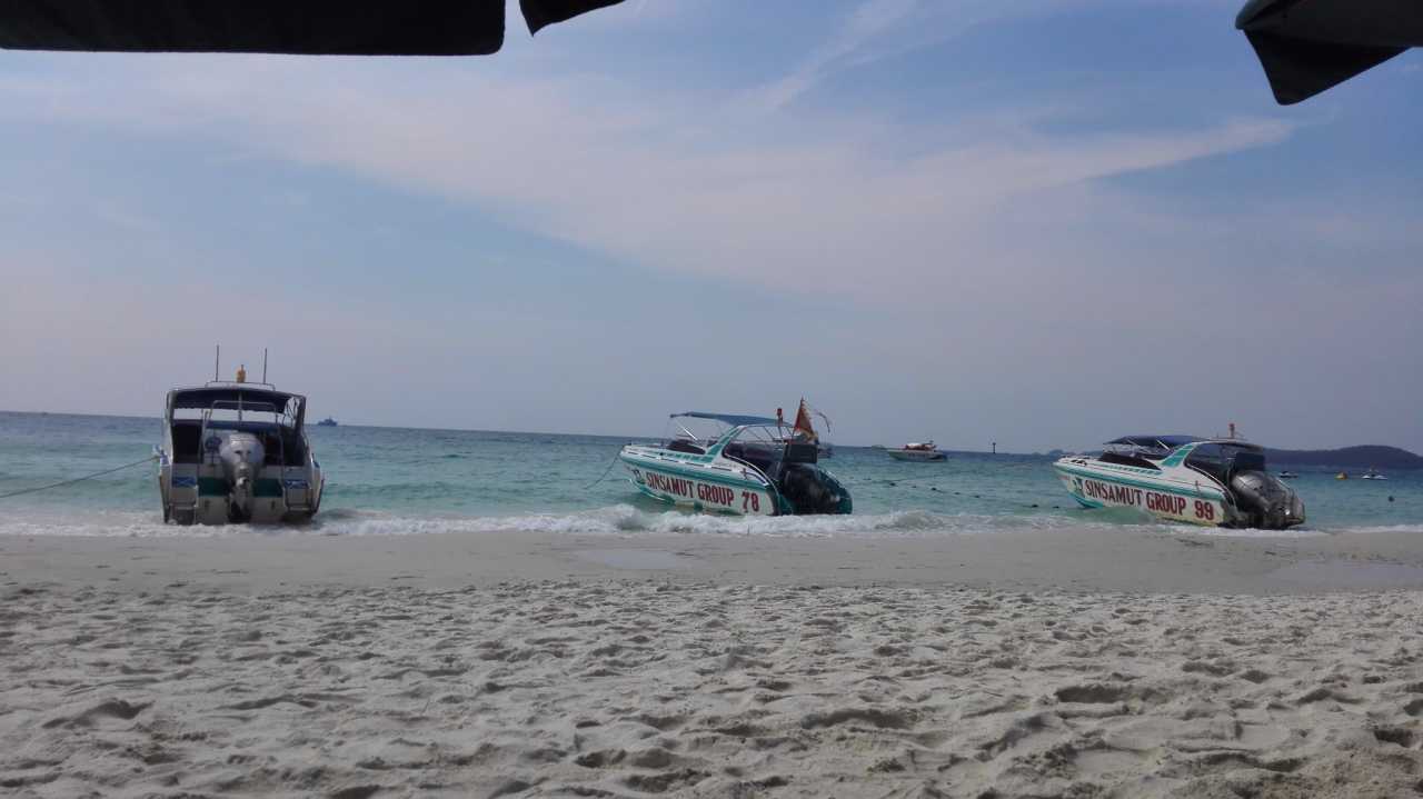 Samet Island water clear, sand very fine feels like mud, didn't participate in water activities due to health reasons. Can swim in the water or rent a lounge chair for 100B, toilet 10B, fresh water 40B, fruit plate 100B