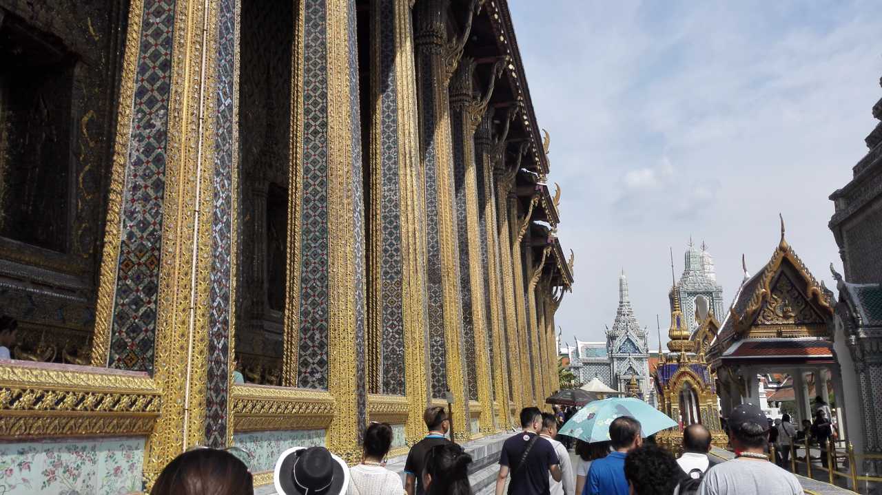 Bangkok Grand PalaceWhen you get to Wat Phra Kaew, it's best to enter the main hall to worship, here it should be mentioned that Thailand is over 95% Buddhist with over 30,000 temples nationwide, many tourist attractions require removing shoes, don't wear too expensive ones, if they get damaged it's heartbreaking, but I haven't encountered lost shoes.