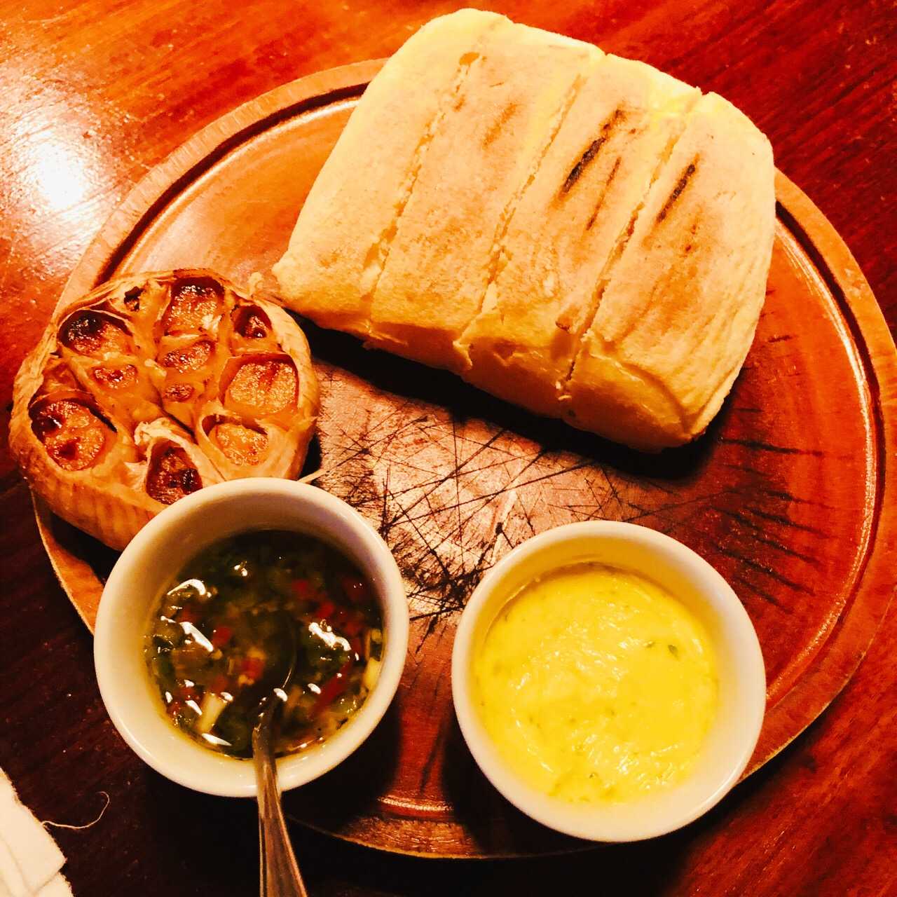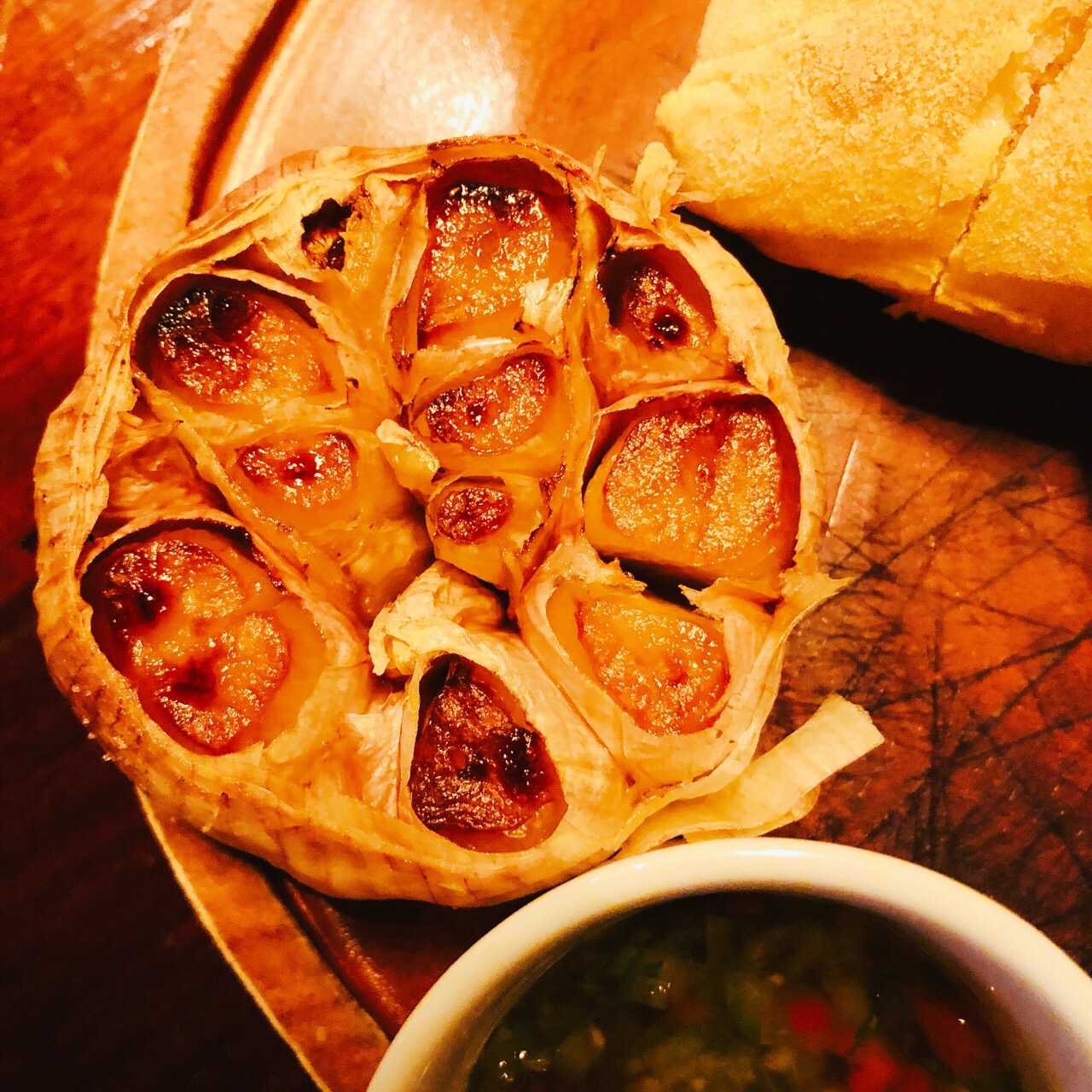 We also ordered bread — crispy outside, soft inside, baked to perfection. The lotus-pod-looking thing is roast garlic; it has none of the pungent raw garlic smell, just a rich roasted garlic aroma. Highly recommended.