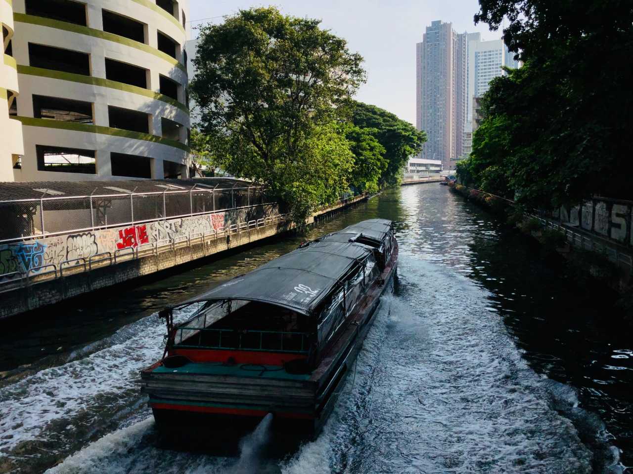 We tried Bangkok’s commuter boat. In Bangkok, these boats are just like buses — they pull in at “stops”, move quite fast, and are part of daily transport.