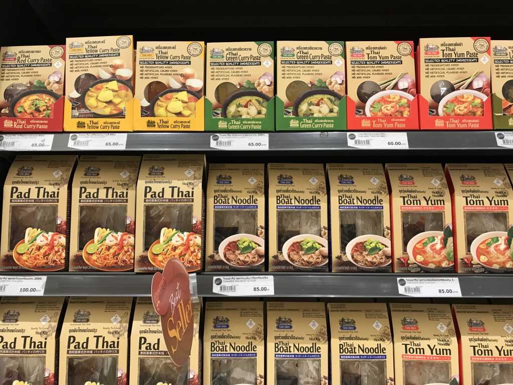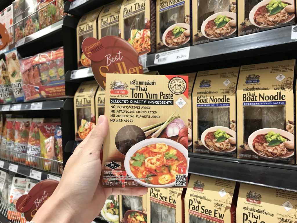 Gourmet Market carries a wide range of Thai seasoning packets — tom yum soup, green curry noodles, pad thai, boat noodles, and other basic Thai flavors. They’re easy to cook and taste great. If you like cooking, don’t miss them!