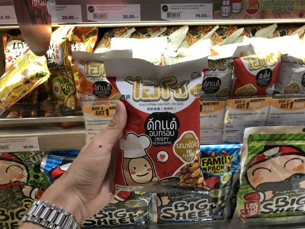 For Thai people this snack is nothing unusual — Thailand has a tradition of eating insects. Rest assured the production is hygienic and healthy. It sounds adventurous, but it doesn’t taste weird — it’s actually really good and addictive. Give it a try!