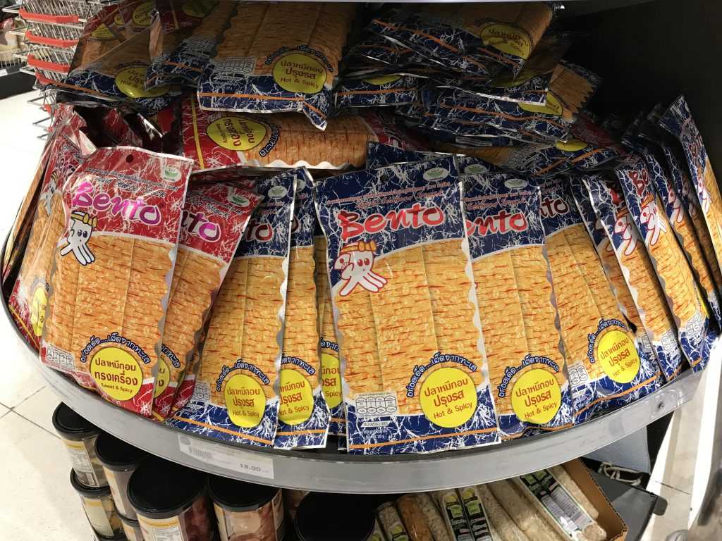 BENTO squid strips are on the spicy side and come in three flavors: blue (mild), red (medium), and orange (hot). Each strip is coated with a rich sauce. About 18 THB per pack (around 4 RMB). If you love spicy, don’t miss it!