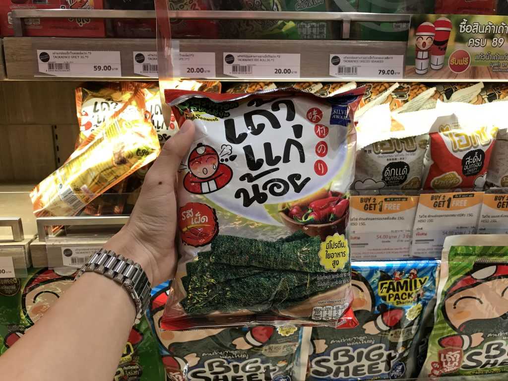 It’s a brand everyone recognizes, but in Thailand there are more varieties than in China — seaweed rolls, sheets; flavors include original, tomato, spicy, squid, tom yum, seafood, etc. It’s also cheaper than in China. Many visitors buy it by the box.