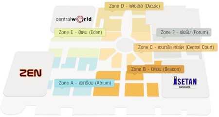 Central World is said to be one of the largest shopping centers in Southeast Asia, with a retail area of 550,000 square meters. Calculated by a football field being 7,140 square meters, it's equivalent to 77 football fields! So now you know why your legs get weak - this is what happens when you shop until you can't walk anymore. To continue the introduction, Central World consists of several parts: Zen Department Store and Isetan Department Store on either side, with Central World Plaza in the middle, and King Power Duty Free on the 7th floor. Central World is larger than any shopping center in downtown Bangkok, offering various facilities and services including over 500 stores, 100 restaurants and cafes, a 15-screen cinema, children's zone and learning center (Genius Planet Zone), two large department stores, and a trendy food court. The mall focuses on affordable brands, where you can find various reasonably-priced Japanese, European, American, and Thai local brands.