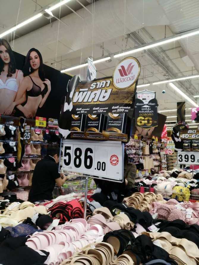 Central World's second floor has underwear counters. The prices of Wacoal, Triumph, MORGAN, and ELLE underwear will really make girls scream - they're more than half cheaper than domestic prices, and the styles are novel. Wacoal's new bras are around 200 RMB, and women's underwear is about 30-40 RMB. Besides the products on the store shelves, there are also special sale items placed outside the stores at very low prices, but the sizes are incomplete and need to be carefully selected.