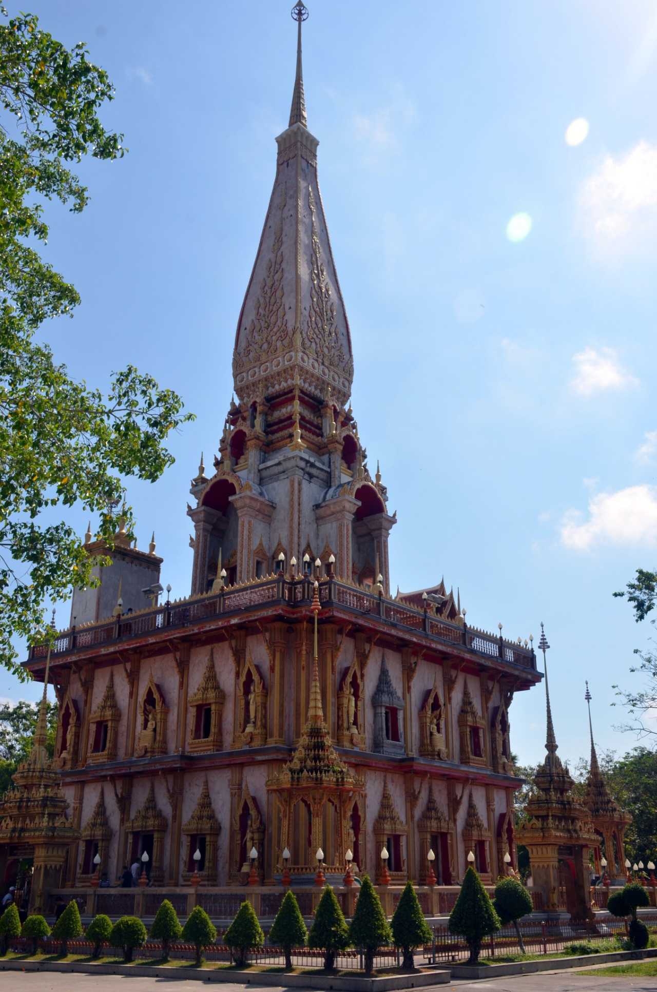 Wat ChalongWe started at the top and worked down. The chedi has three floors; shoes off inside. The relic is enshrined at the top.
