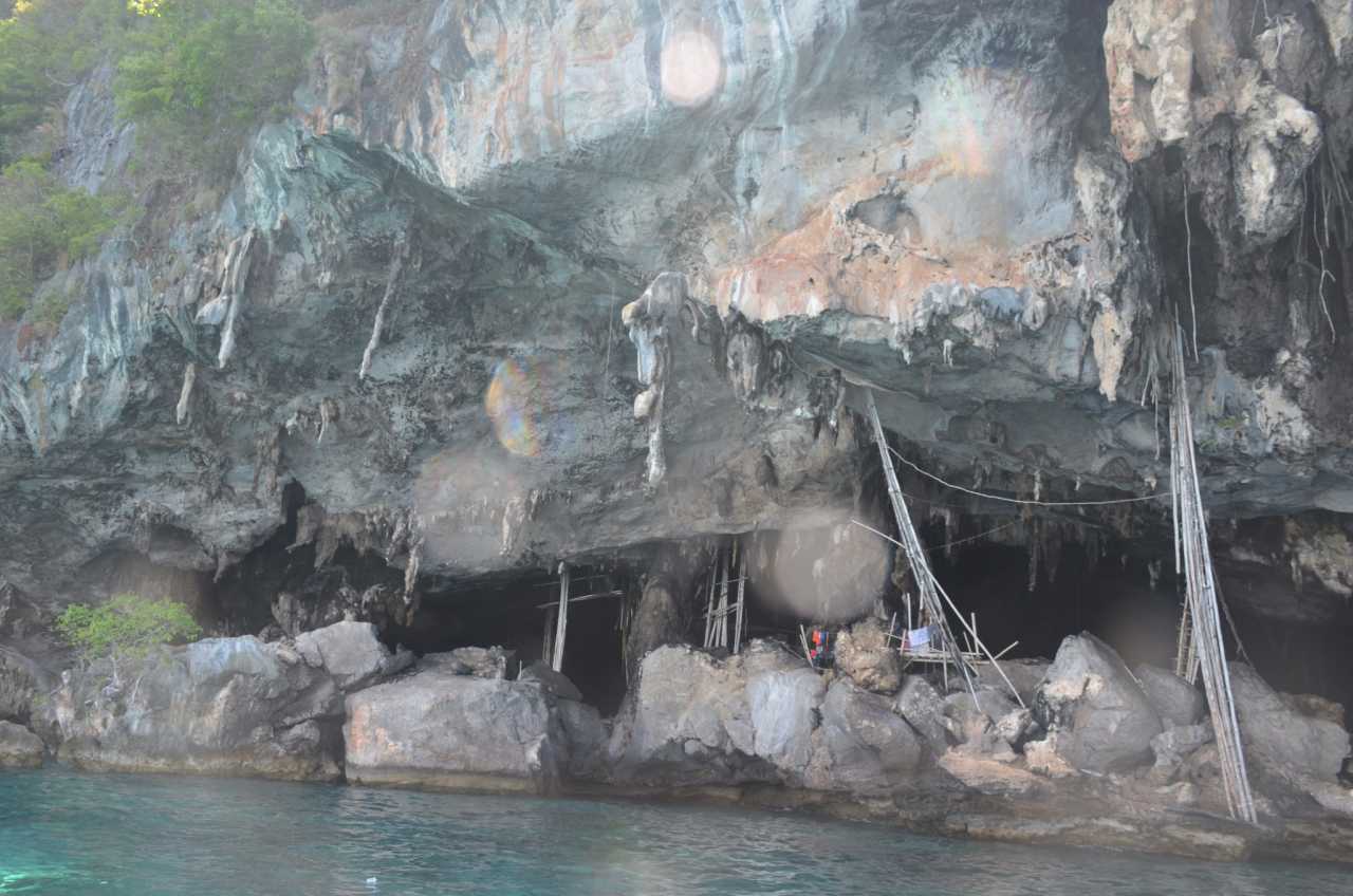 Phi Phi LehFirst stop: Viking Cave (bird’s nest cave). It’s viewed from a distance; not much to see up close.