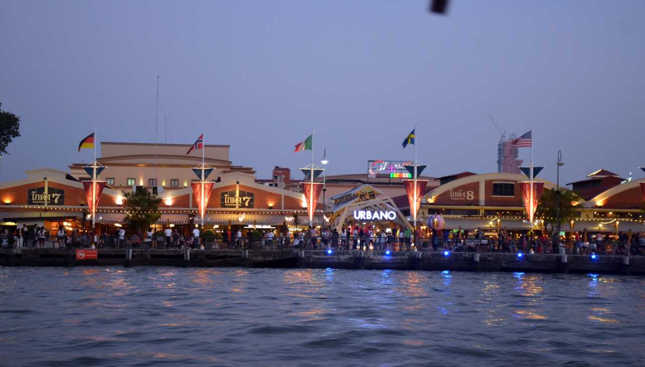 Chao Phraya RiverNight breezes on the Chao Phraya are pleasant in this season. We transferred to the free shuttle boat at the central pier and reached the riverside market in about 10 minutes.