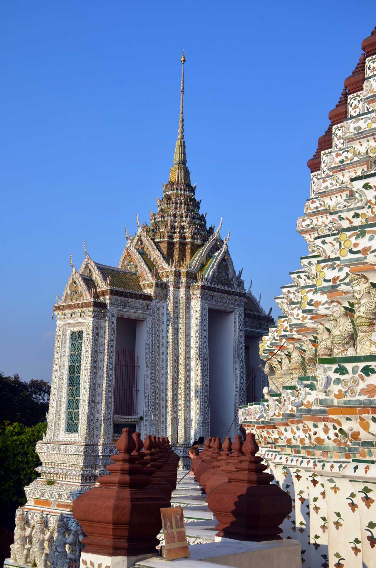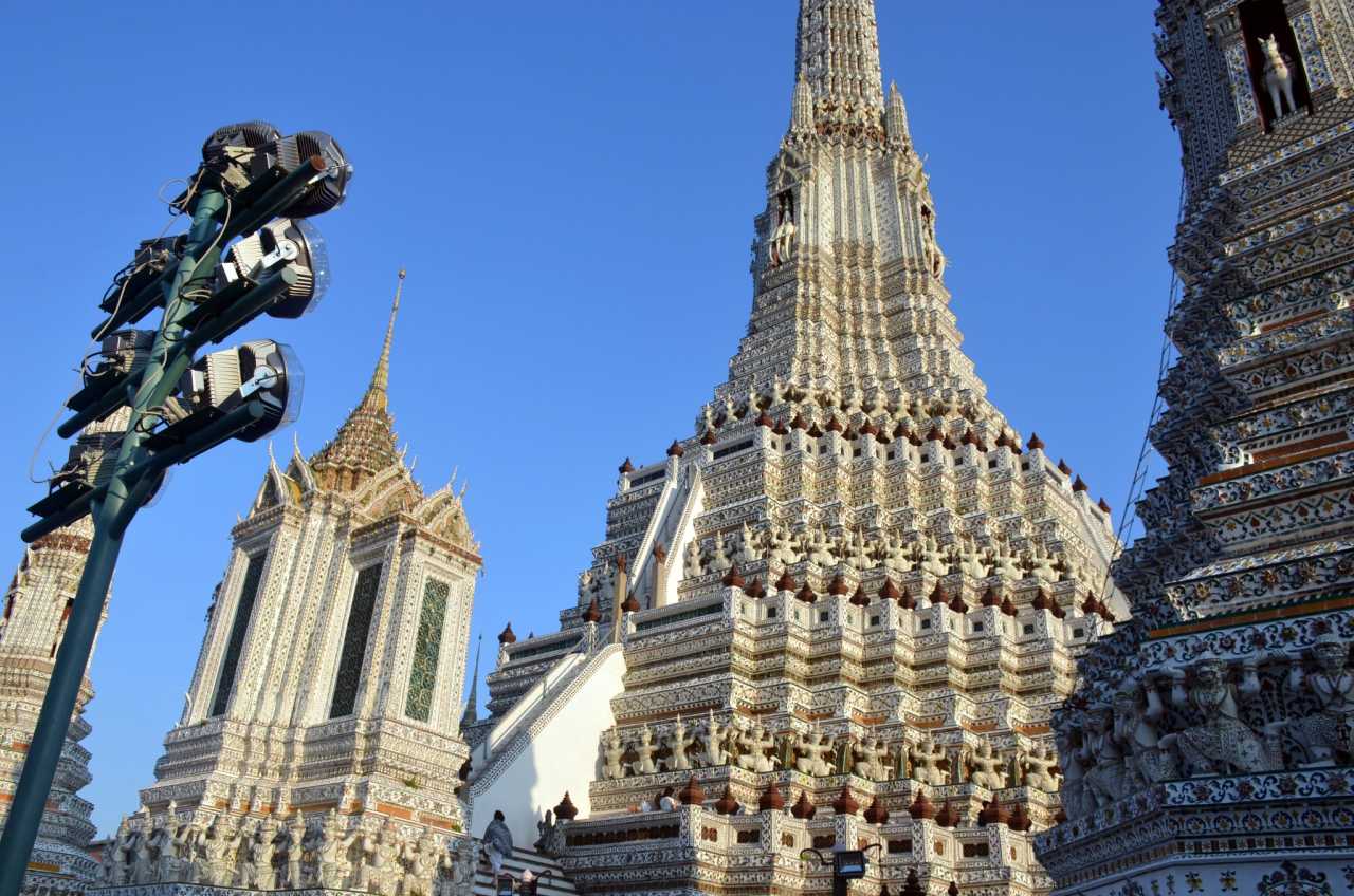 Wat ArunWat Arun is predominantly white, with exquisitely detailed carvings—a classic Southeast Asian architectural style.