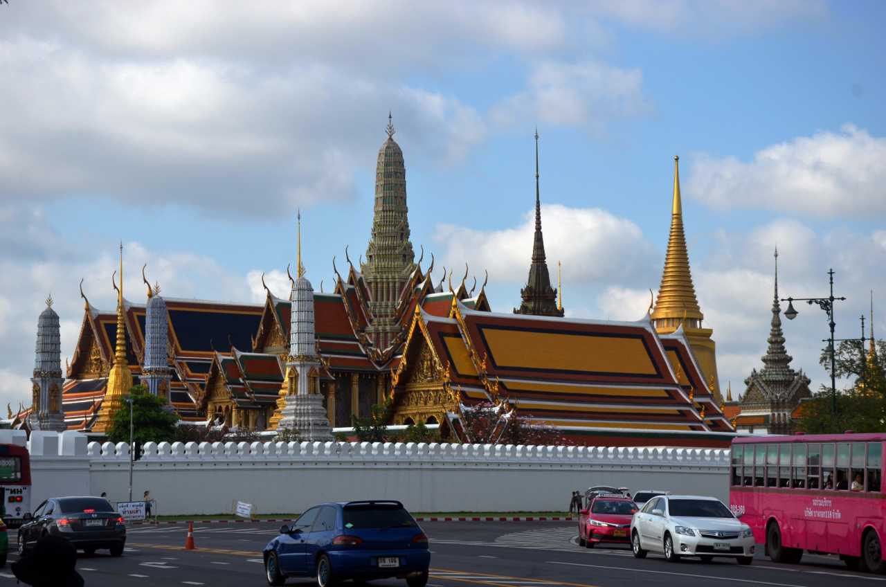 Grand Palace BangkokRestrooms are accessible from side exits. From here you see a different angle of the complex; the white prangs look nearly identical to those at Wat Arun.